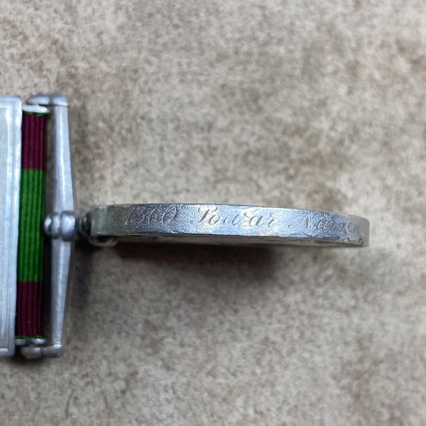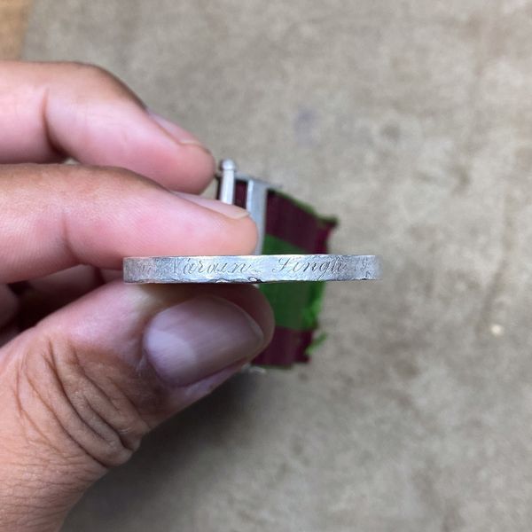 1360 Sowar Naroun Singh 19th Bl Lancers 1360 ਨਰੌਣ ਸਿੰਘ 19ਵਾਂ ਬੀ.ਐਲ Sowar Naroun Singh of the 19th Bengal Lancers earned distinction during the Afghanistan campaign of 1878-80, receiving the Medal with a single clasp for Ahmed Khel, engraved in a running script.