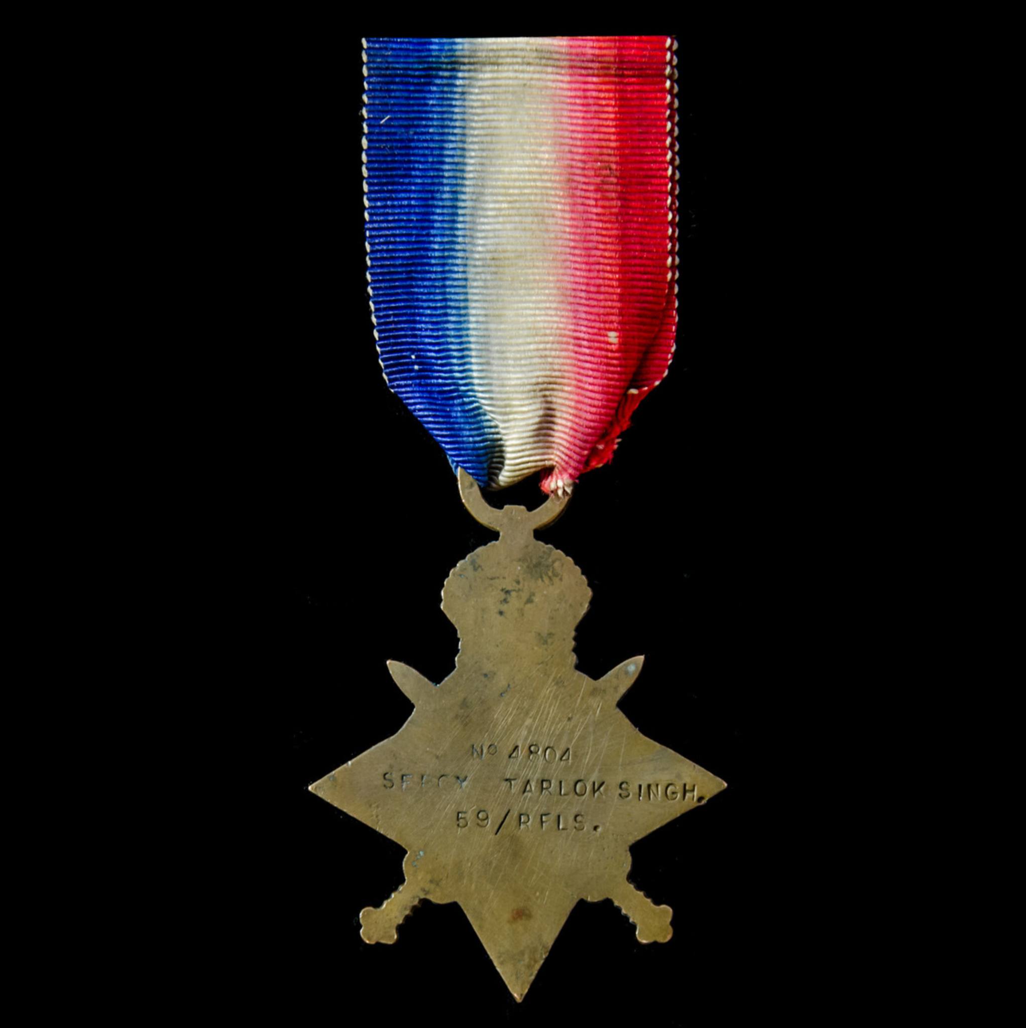 Sepoy Tarlok Singh, 59th Rifles, Indian Army, who was present with the Indian Expeditionary Force out on the Western Front, being wounded in action on 29th October 1914. [1914 Star awarded to a Sikh, Sepoy Tarlok Singh, 59th Rifles, Indian Army, who was present with the Indian Expeditionary Force out on the Western Front, being wounded in action on 29th October 1914