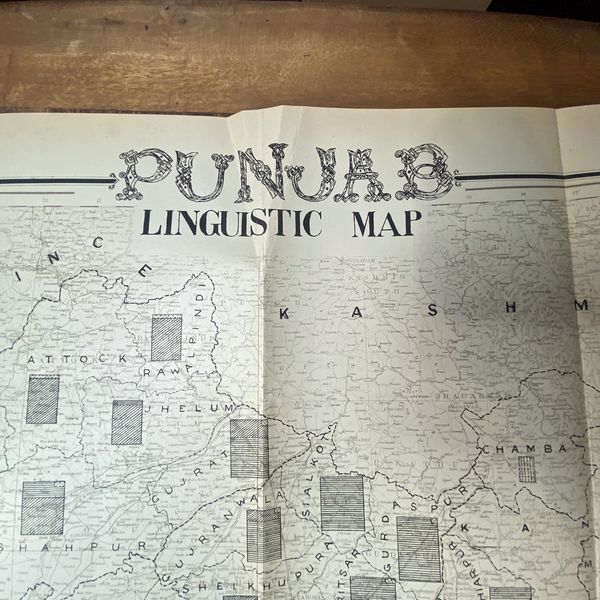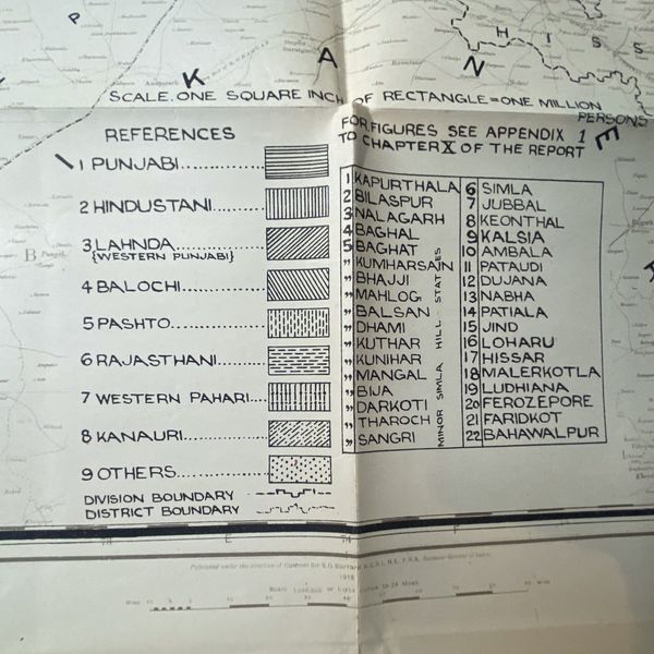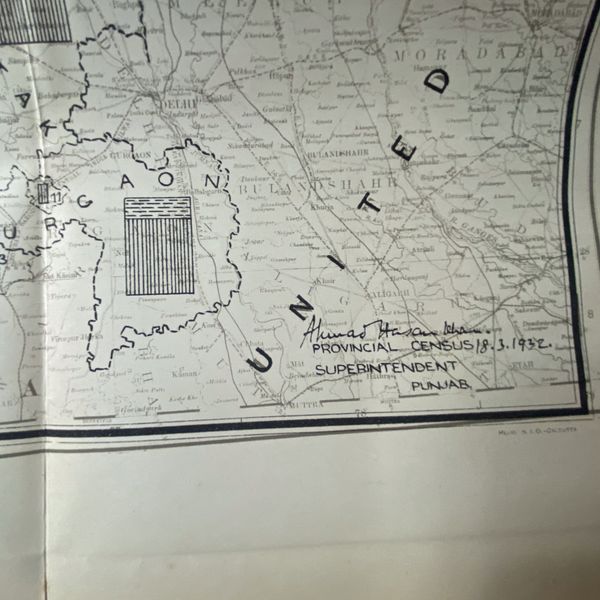 1932 Punjab Linguistic Census Map Presenting the Punjab Linguistic Map from the March 18, 1932 Census, signed by Khan Ahmad Hasan Khan, Superintendent of Punjab. Unveil Punjab's linguistic diversity and cultural richness through this vintage map. Explore languages spoken and cultural regions that defined the era.
