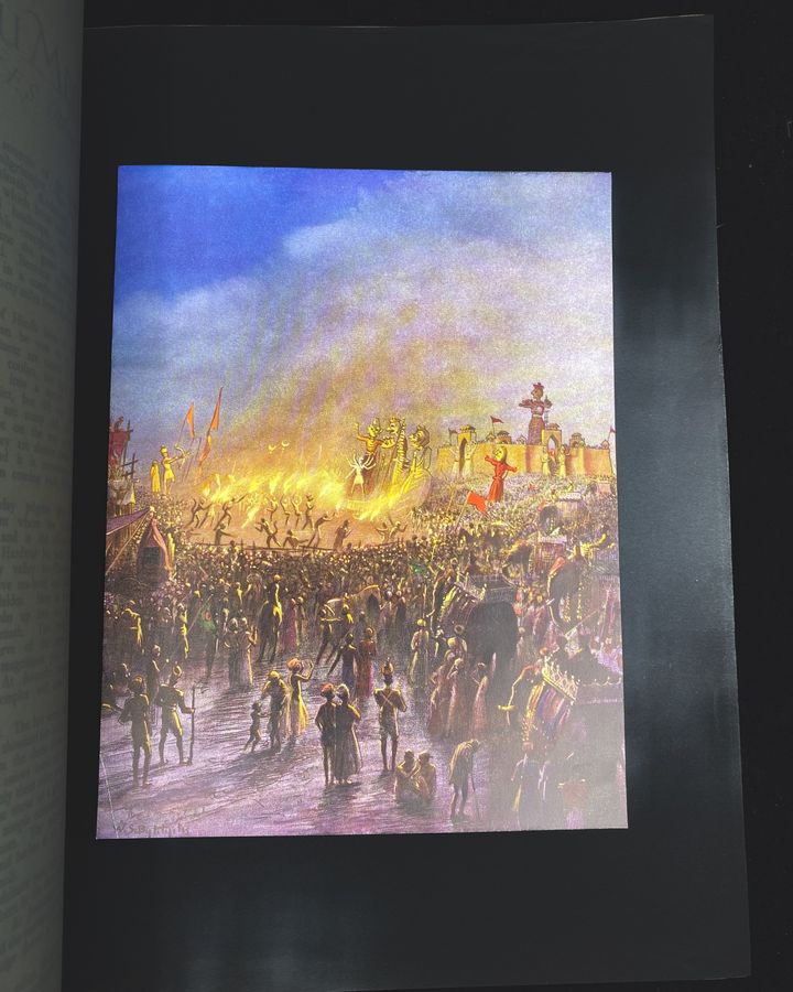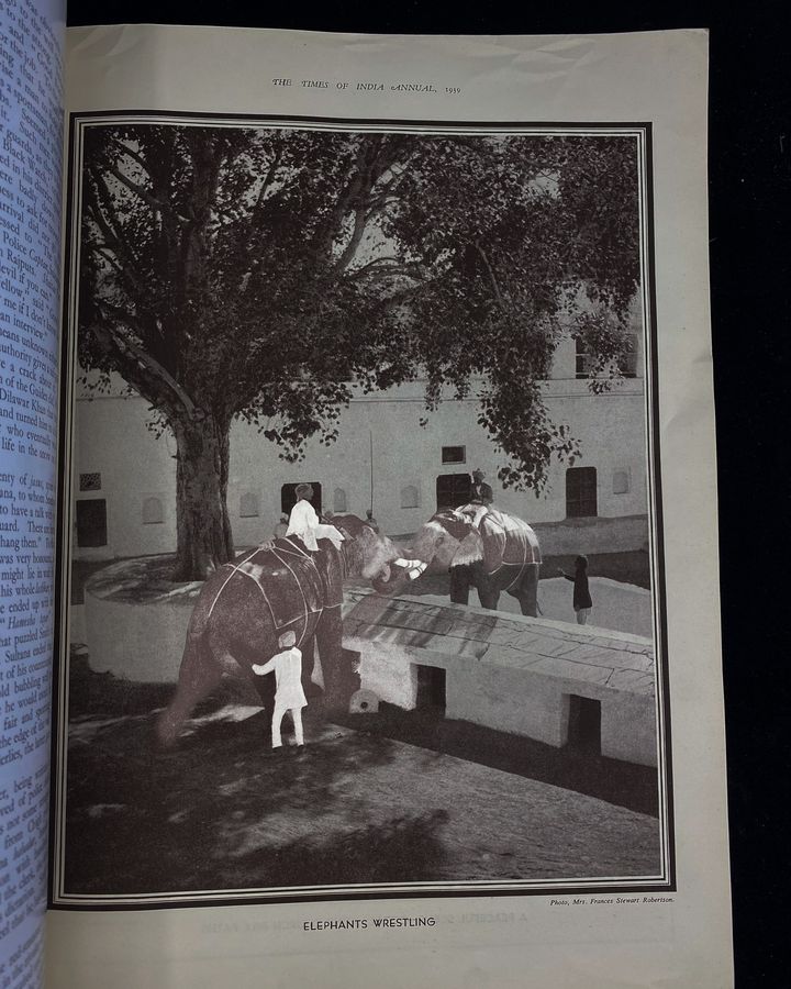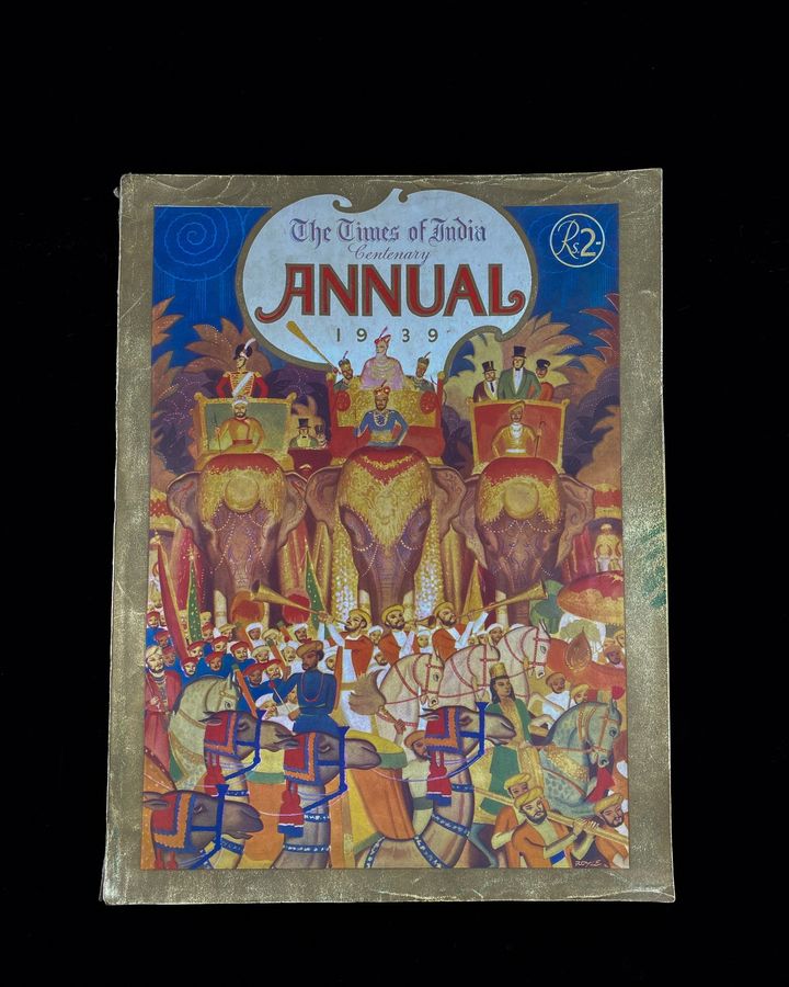 The Times of India Annual magazine was published by the Times of India Press in Bombay. The magazine was published from 1919 to 1941 and again from 1949 to 1979. Between 1942 and 1948, the journal was called - Indian Annual. These pre-independence issues are particularly attractive with numerous full bleed colour plates of paintings tipped-in on thick black sheets and paintings used as advertisements by some of the well known master artists and illustrators, apart from the interesting articles of that period. Individual plates are 9 1/2" x 7" full bleed mounted on card stock magazine pages and cover protected by a tissue page, suitable for framing. 1939 issue: Times of India Annual 1 - The Return from the well (by Capt. Gladstone Solomon) 2 - Festival of Ram Lila (by W S Bagdatopulos) 3 - Bharat Melao (by W S Bagdatopulos) 4 - Eve of the eclipse of the moon (by W S Bagdatopulos) 5 - Jai Jangal Dhar Badshah 6 - A Typical scene in the Sind Valley, Kashmir (by P G Sirur) 7 - The Famous Golden Temple of the Sikhs at Amritsar 8 - The Muharram