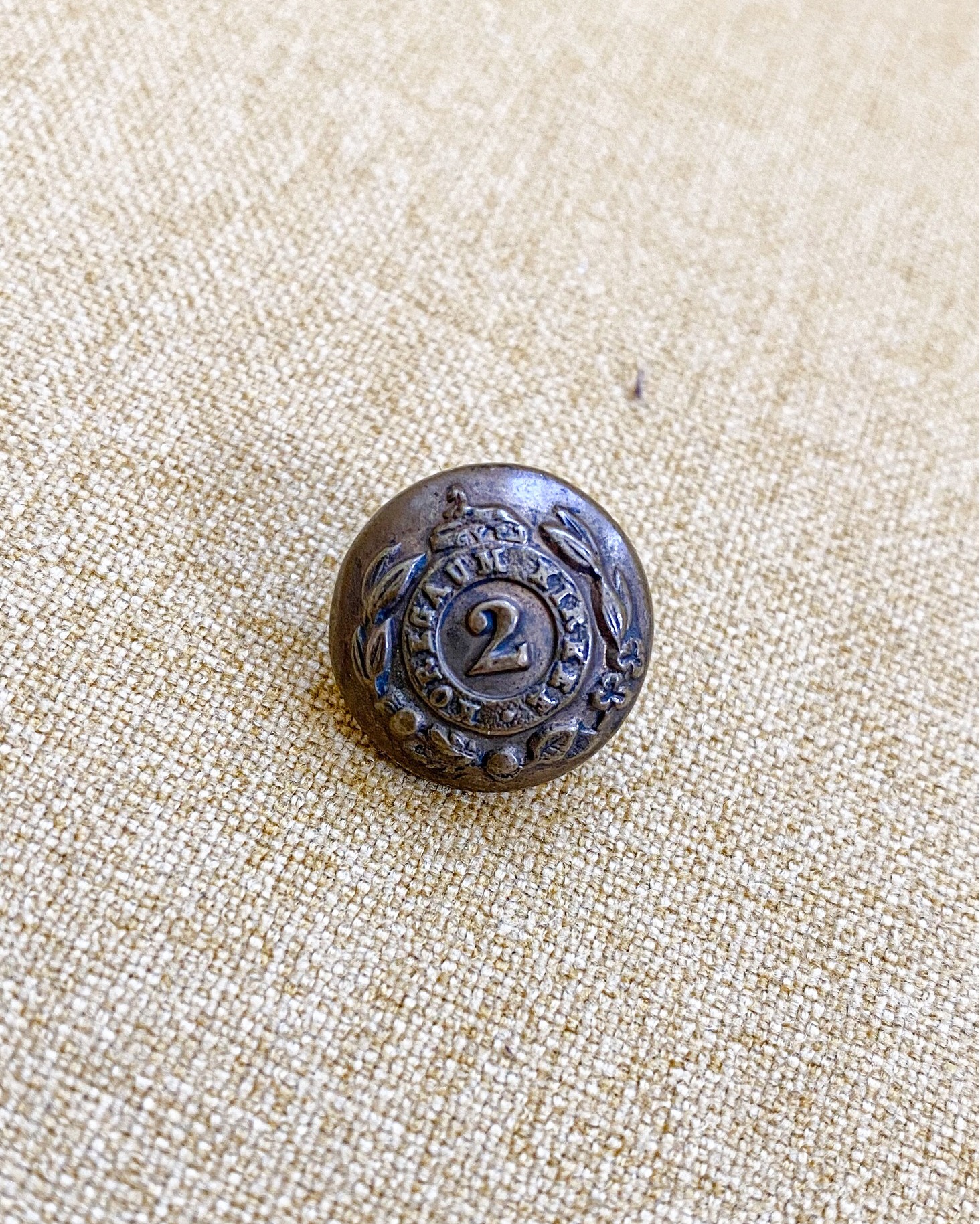 The Second or Grenadier Regiment Native Infantry was one of just two grenadier regiments in the Bombay army which took precedence in the line of Native Infantry. The button carries all its battle honours, Koregaum & Kirkee on the circle around the numeral 2 and the especially prized early honour Egypt beneath the sphinx at the top of button. Several regiments who had this honour wore it in this way where others would have the royal crown. The button retains most of its original gilt and has the backmark JENNENS &Co.