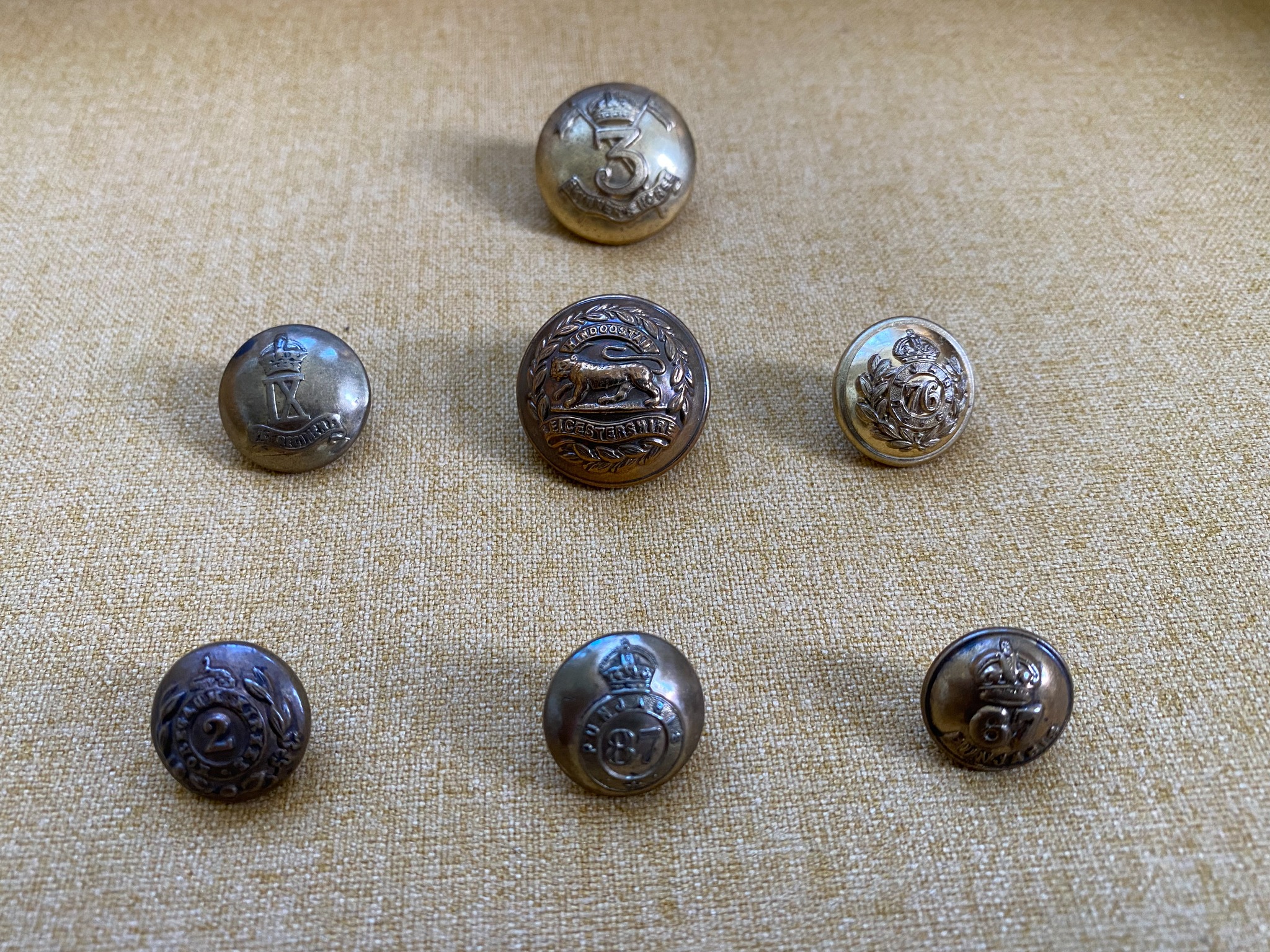 British army regimental and corps tunic buttons are as varied as all other aspects of regimental insignia. They come in 3 main sizes with c. 26mm "Large" size used for tunic buttons, great coats and officer's buttons.
