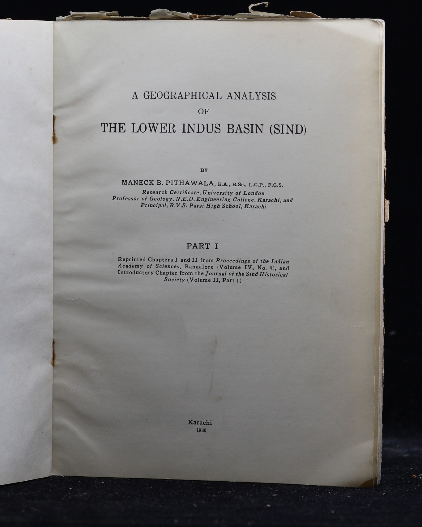 A GEOGRAPHICAL ANALYSIS OF THE LOWER INDUS BASIN (SIND) MANECK B. PITHAWALA, B.A. b.SC, L.C.P,, F.G.S Research Certificate. Universit London Professor of Geology, N.E.D. Engineering College, Karachi, anc Principal, B.VS. Parsi High School Karach PART I Reprinted Chapters I and Il from Proceedings of the Indian Academy of Sciences, Bangalore (Volume IV, , No. 4), and Introductory Chapter from the Journal of the Sind Historical Society (Volume TI Part 1 Karachi 1936
