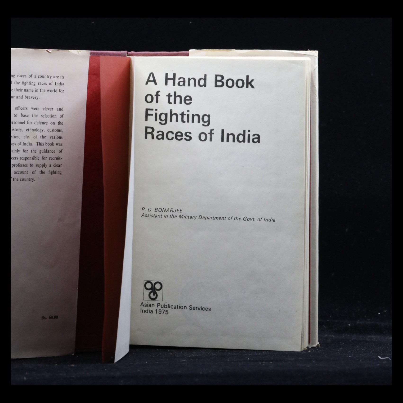 This book by P D Bonarjee gives a brief sketch of the history, ethnology, customs, characteristics, etc., of the fighting races of India. It is an introductory treatise on the subject. It professes to supply a clear and brief account of the fighting material of the country, for the use of young British Officers. The races discussed in the book are- Pathans, Baluchis, Punjabi Mahomedans, Sikhs, Gurkhas, Dogras, Jats, Aboriginal Tribes, Garhwalis, Hindustani Mahomedans, Rajputs, Mahrattas, Fighting race of South India and Miscellaneous Tribes.