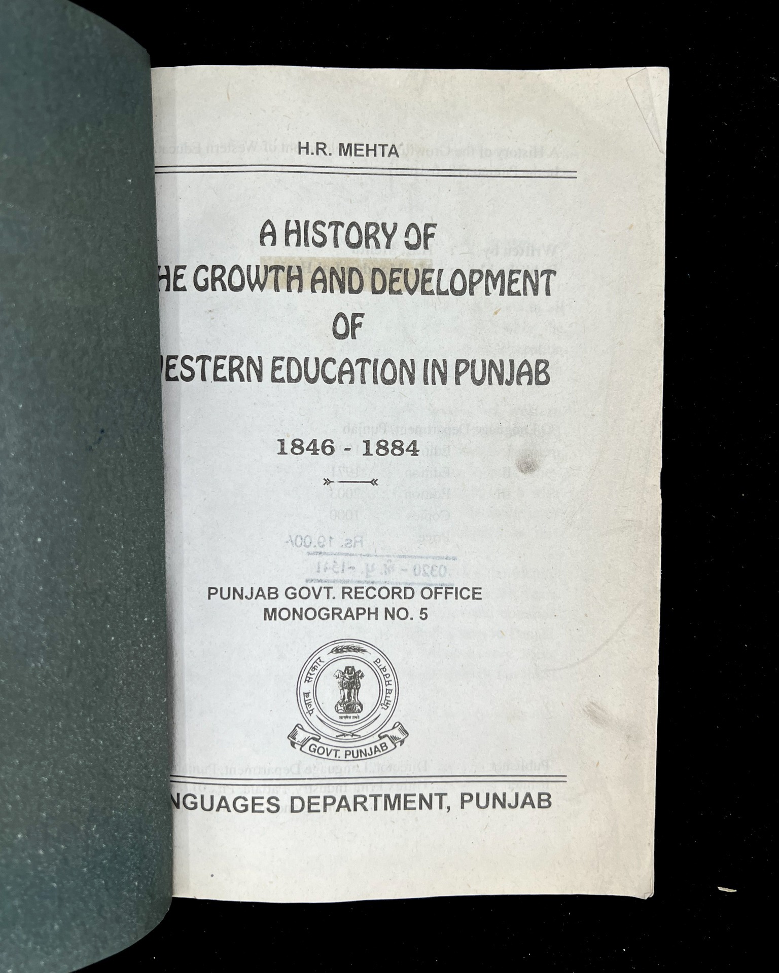 by H R Mehta This monograph provides a comprehensive overview of the spread of Western secular education in Punjab over the 38 years since Britain annexed Punjab in the mid-19th century. Their new education policy and implementation through the establishment of a national network of elementary and junior high schools have made the people of Punjab better known and able to hire their youth British India.