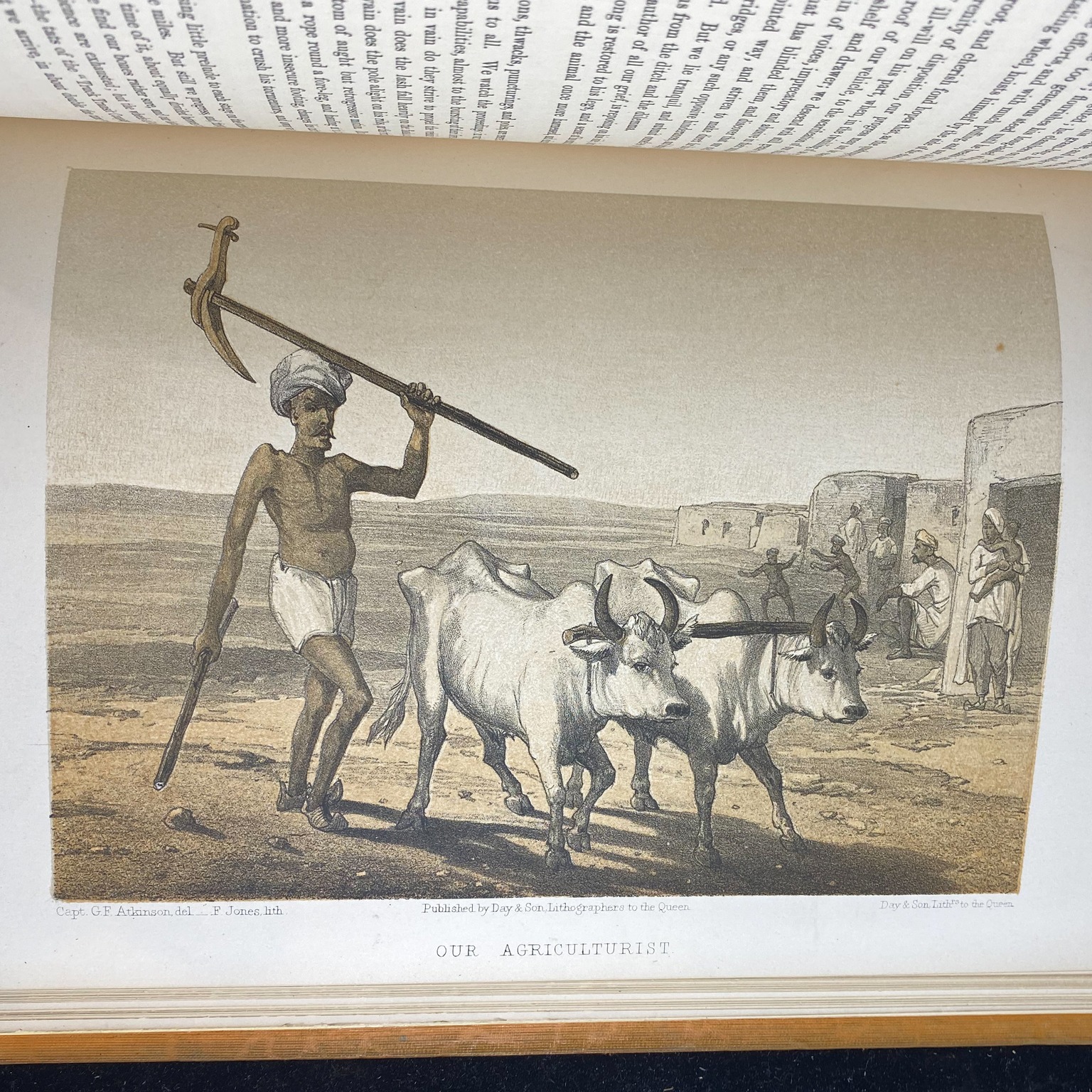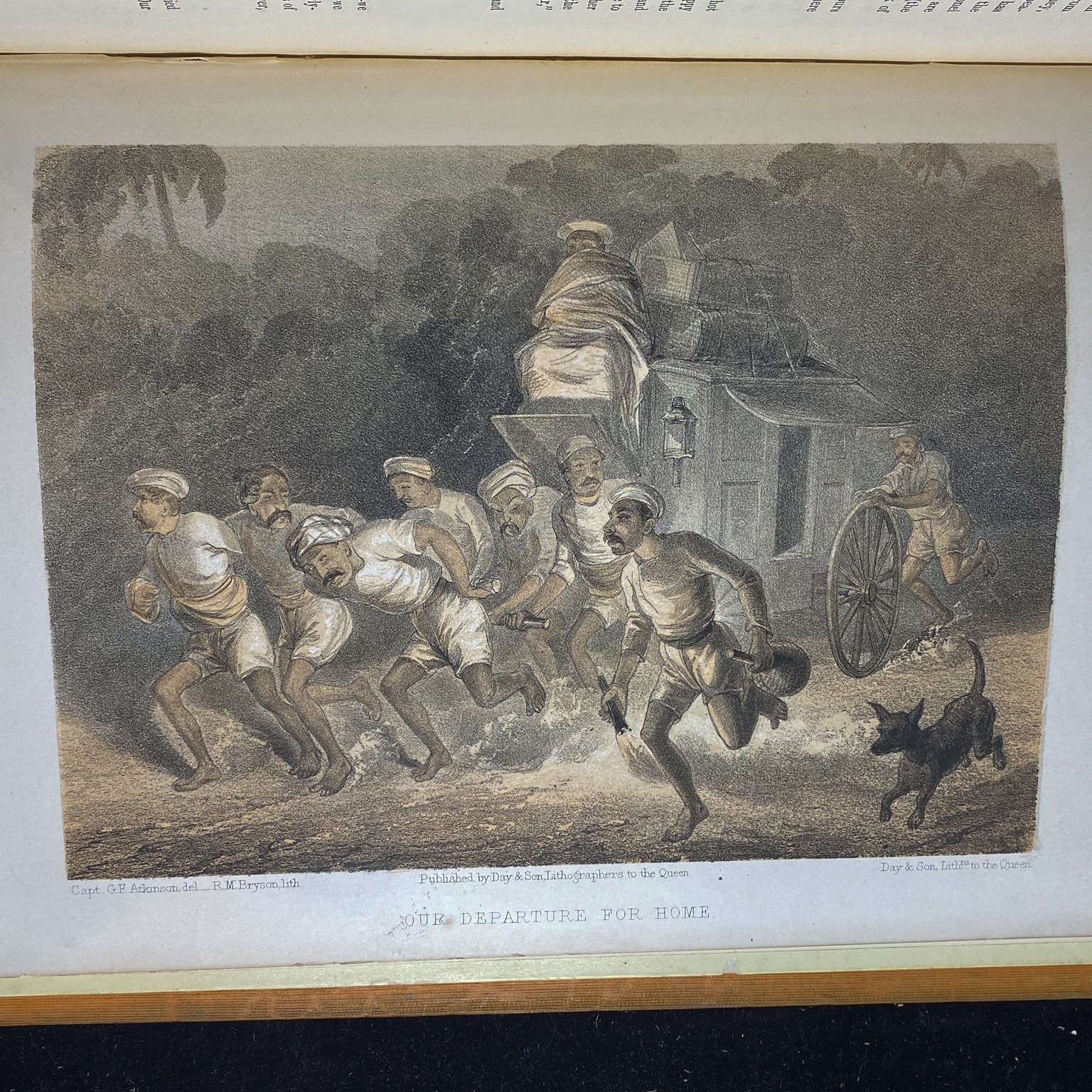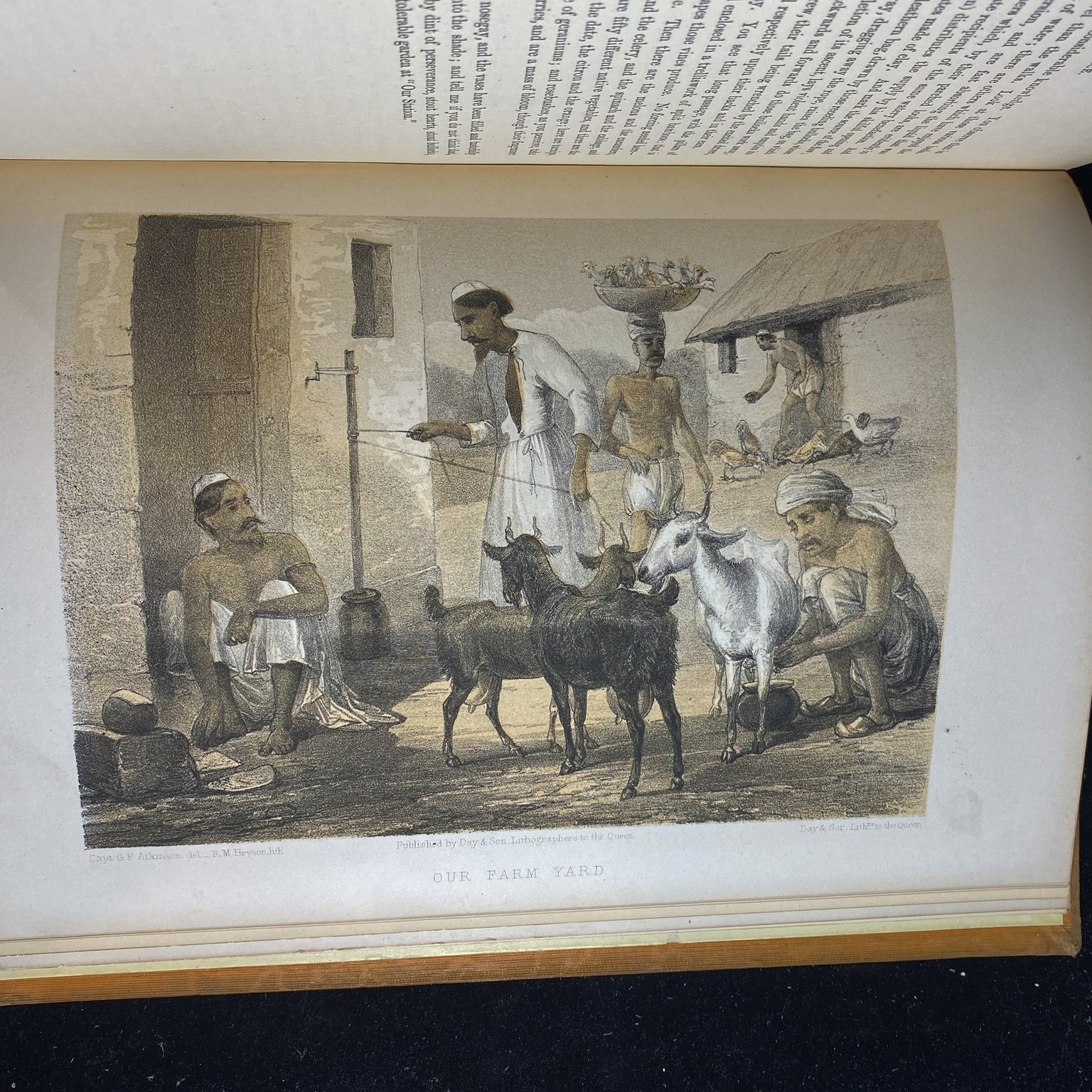 "Curry & Rice" on Forty Plates; or, The Ingredients of Social Life at "Our Station" in India, third edition, additional lithographed title (frayed and loose), 40 tinted lithographed plates by Day & Son after G. F. Atkinson. Day & Son, [c.1860] A profusely illustrated work regarding India in the nineteenth century. Providing a somewhat satirical insight into the colonies in occupied India. Form/Genre: Lithographs -- Hand-colored -- 1859. Contributors: Bryson, Robert M., active 1863-1876, lithographer. Jones, Frederick, active 1867-1885, lithographer. Laby, Alexander, 1814-1899, lithographer. McCulloch, George, fl 1859-1901, lithographer. Picken, Thomas, -1870, lithographer. Walker, Edmund, lithographer Wyatt, M. Digby (Matthew Digby), Sir, 1820-1877, binding designer.