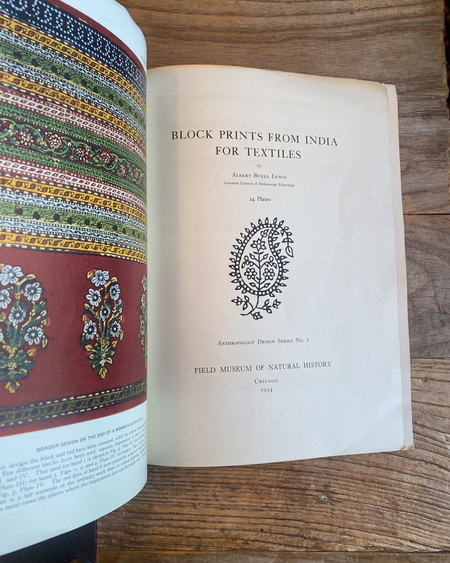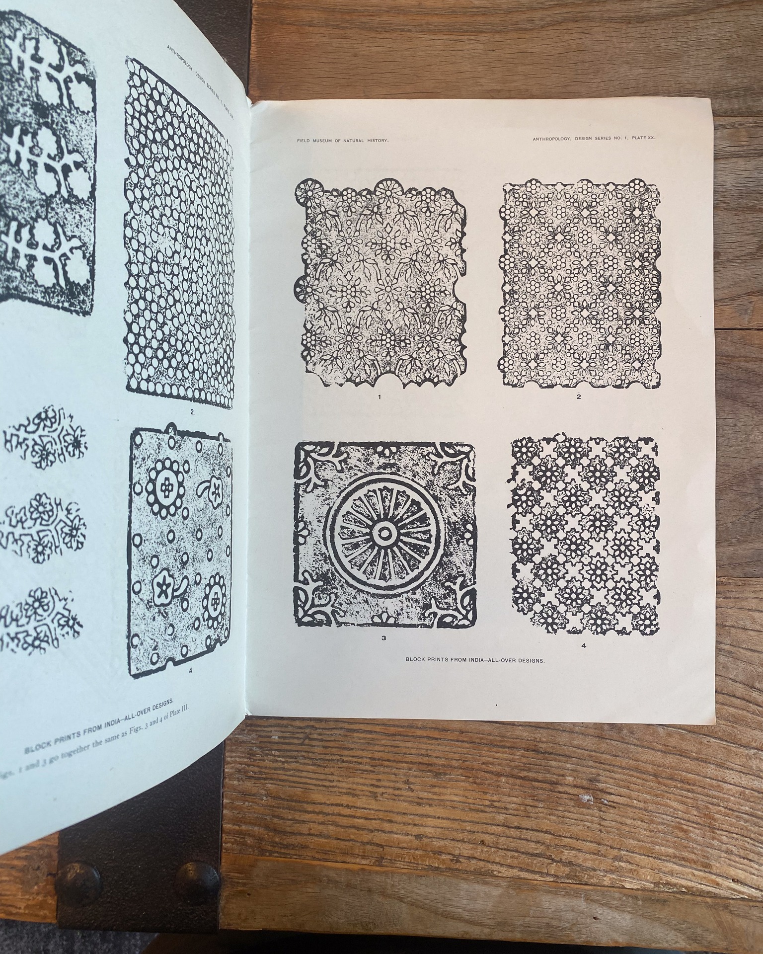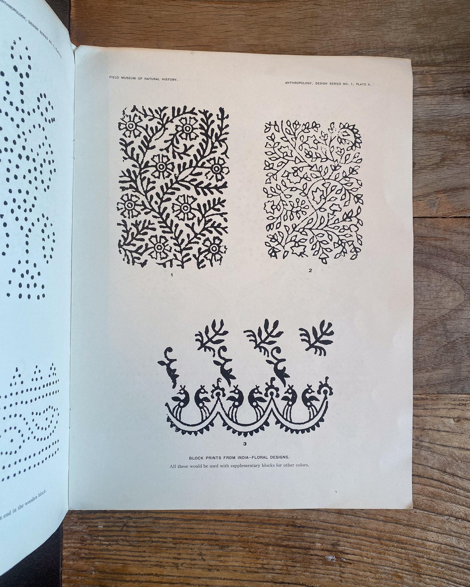 Block prints from India for textiles by Lewis, A. B. (Albert Buell), 1867- Publication date 1924 PREFATORY NOTE With this issue Field Museum of Natural History inaugurates a new series of publications calculated to render accessible in convenient form primitive and oriental designs from material in the Museum collections. It is hoped that this series will render good services to teachers and pupils of public, high, and technical schools, as well as to professional designers, craftsmen, manufacturers, and any students interested in decorative art. The series will mainlv consist of collections of designs accompanied by one or two pages of explanatory text, but without scientific discussion. B. LATFER, Curator of Anthrobology