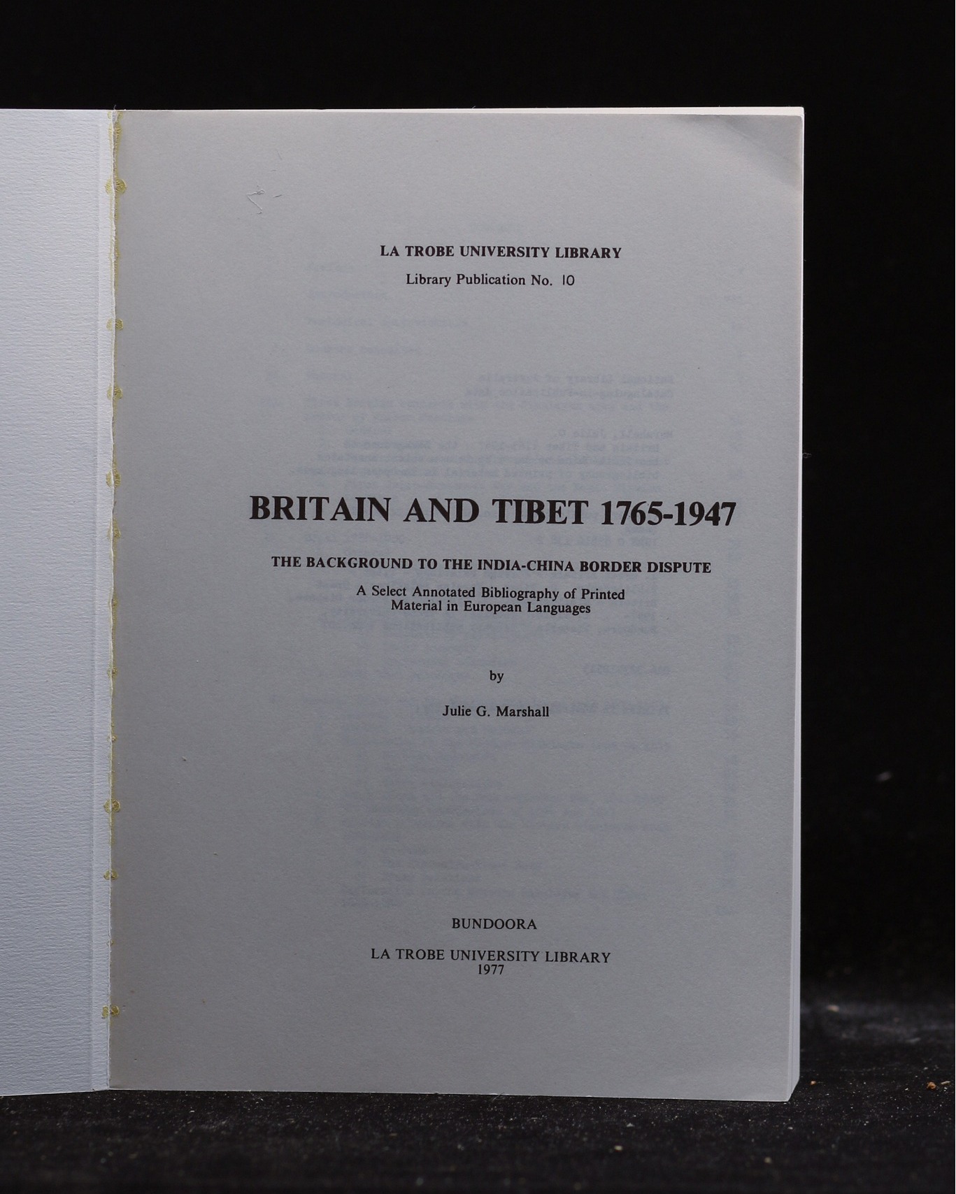 LA TROBE UNIVERSITY LIBRARY Library Publication No. 10 BRITAIN AND TIBET 1765-1947 THE BACKGROUND TO THE INDIA-CHINA BORDER DISPUTE
