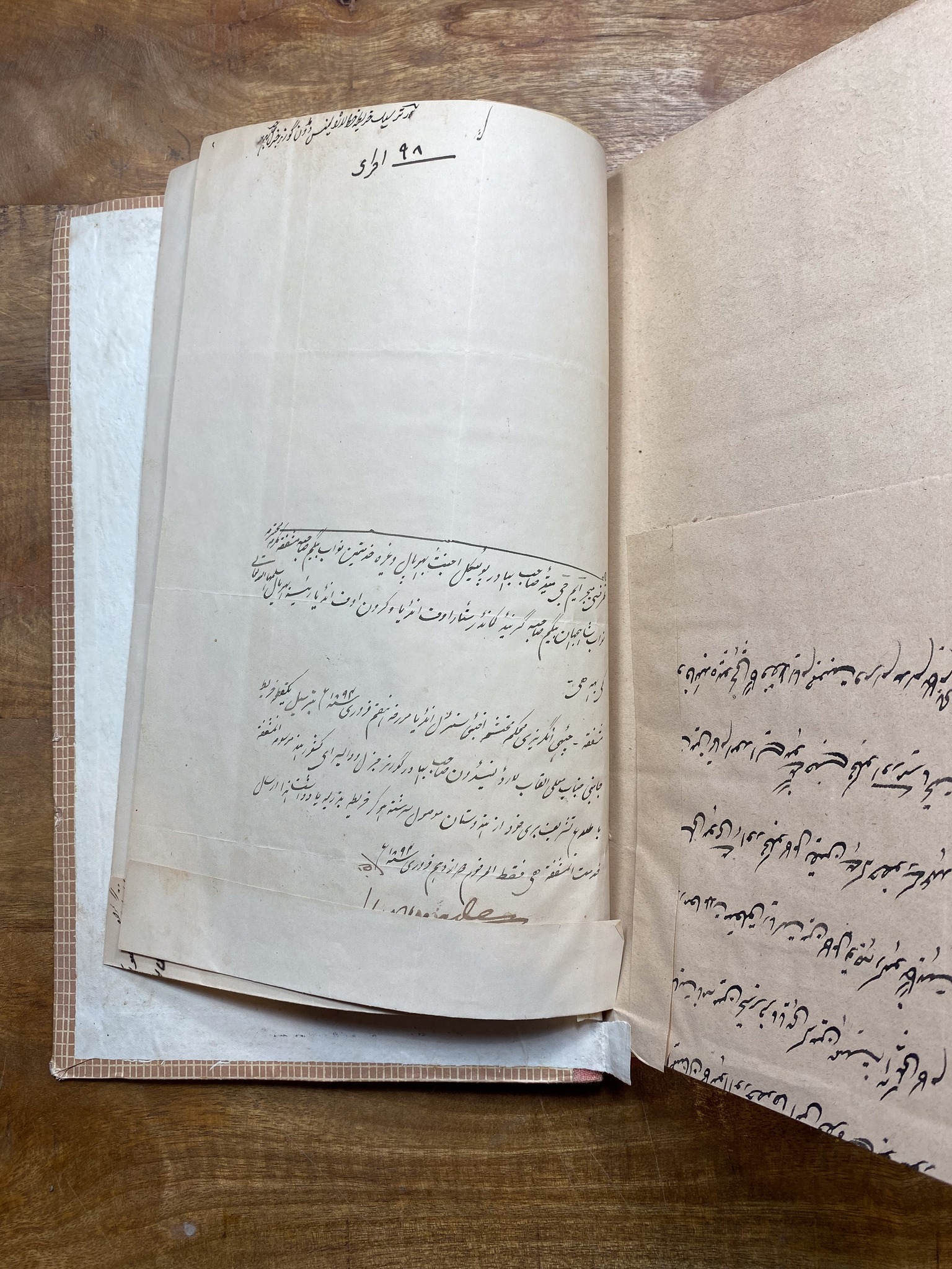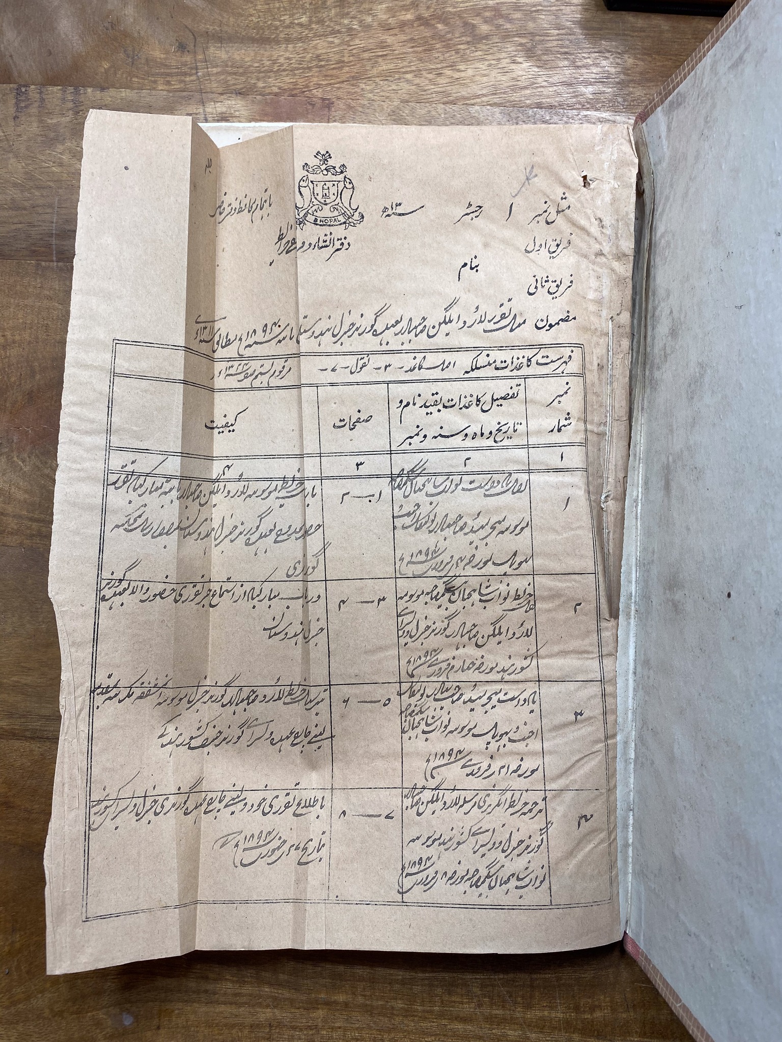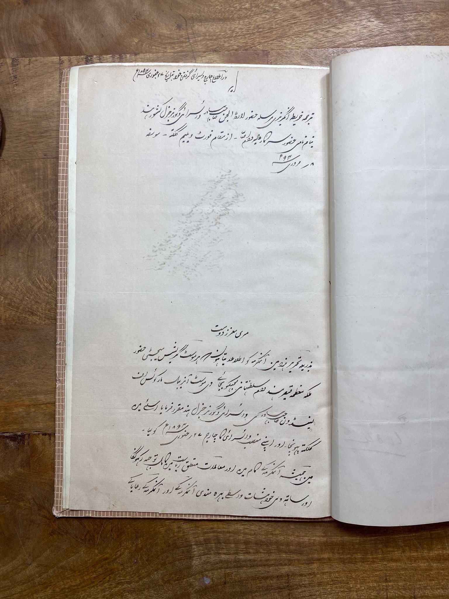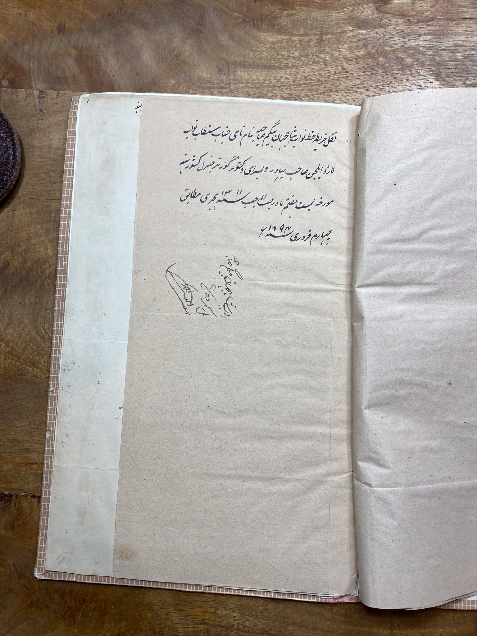 Lord Elgin, to the Begum of Bhopal, Nawab Shah Jahan Begam, in 1894. This letter, authored by a secretary in palace script on a bifolium adorned with the royal arms in gold, is directed to Her Highness Nawab Shah Jahan Begum, G.C.S.I., C.I., of Bhopal. It is signed by Elgin, the Viceroy and Governor General of India, and bears the date of February 8, 1894, from Fort William. The letter is securely fastened within a simple card folder. It includes approximately eight pages of untranslated Persian script, likely comprising copies of the Begum's letters and their translated responses, with one letter bearing the signature and stamp of the Political Agent in Bhopal. Commencing with the salutation "My Esteemed Friend," this fairly formal introductory letter informs that Elgin assumed office on January 27, succeeding the Marquis of Lansdowne, and expresses his intention to take a keen interest in the state of the Begum. While such letters were typically dispatched to senior states, they rarely appear in the market, rendering this particular one unique as it is specifically addressed to the only female ruler of an Indian state in her own right. It was customary for most letters to be conveyed by the Resident or Agent of a state rather than directly dispatched by the Viceroy.