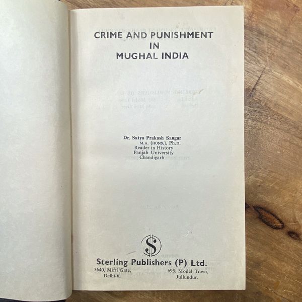 Crime and Punishment in Mughal India Dr. Satya Prakash Sangar M.A. (Hons.), Ph.D. Chandigarh Panjab University Sterling Publishers (P) Ltd. 3640, Mori Gate, Delhi-6. 695, Model Town, Jullundur. "Crime and Punishment in Mughal India was originally 1 submitted as a Ph. D. thesis to the University of Poona in 1957. The interval between the acceptance of the thesis in the same year and its publication in 1967 has been utilized in adding further matter and subjecting the manuscript to a thorough revision. As a result, the original thesis has assumed almost double its former size. "