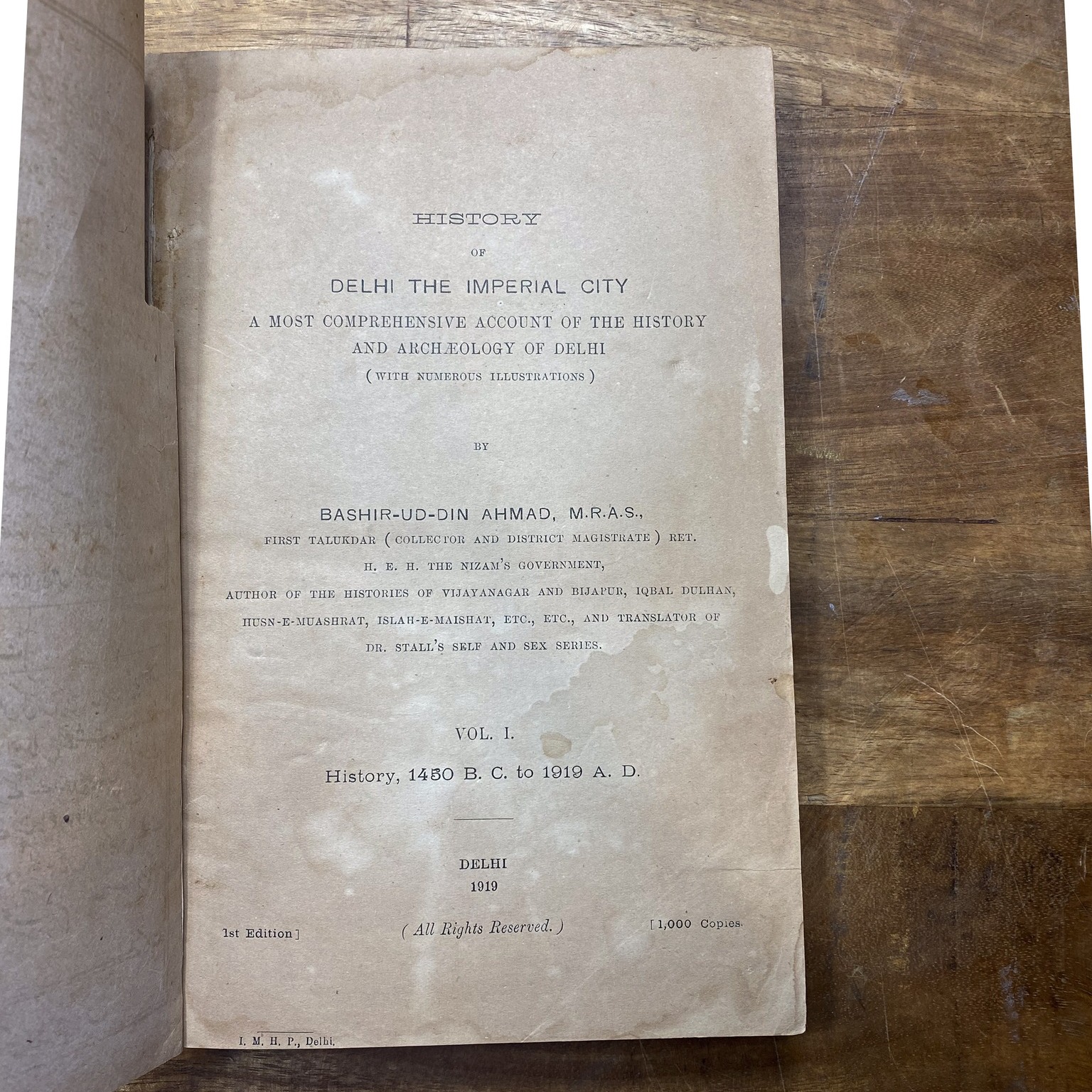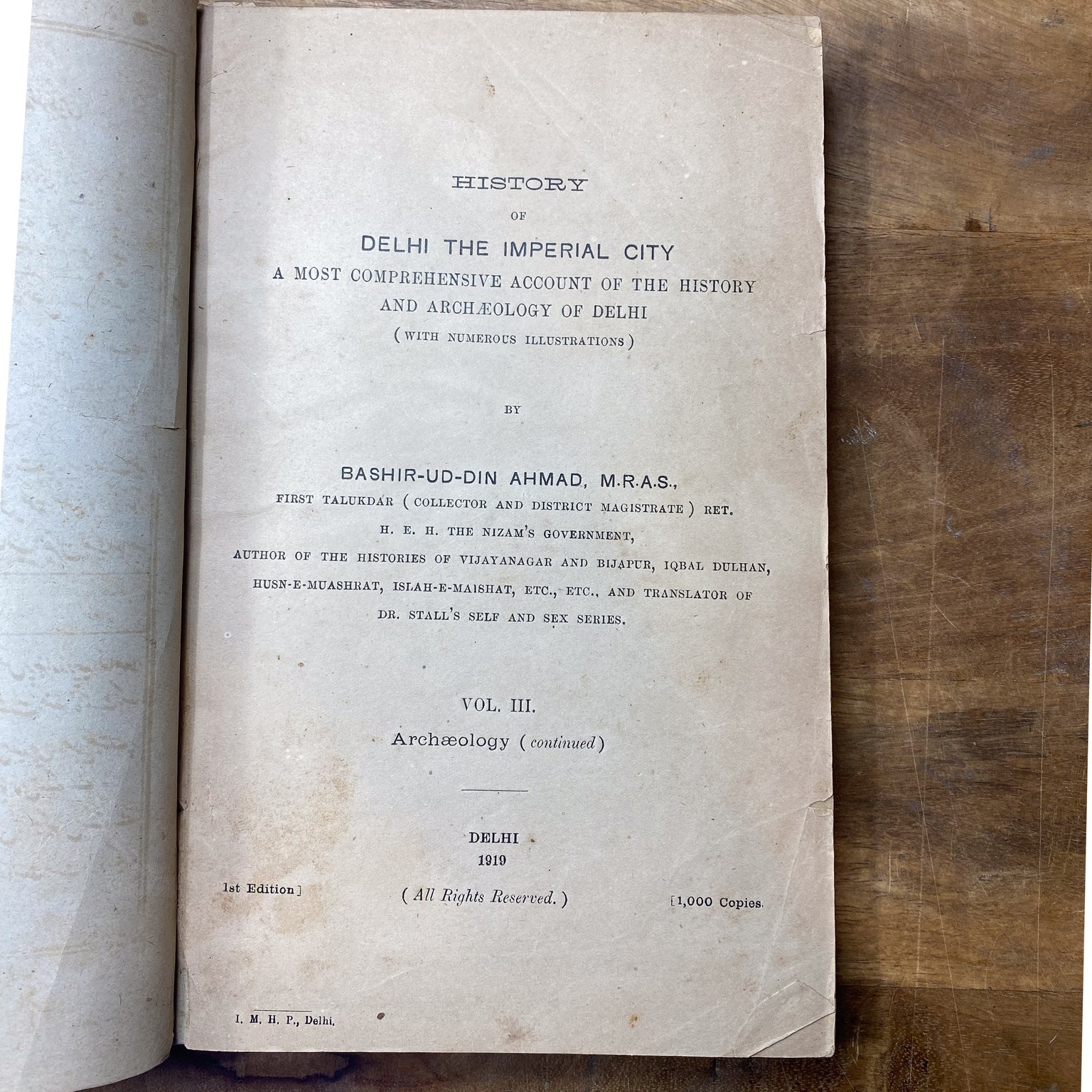 Volume III continues this archaeological exploration, further enriching our understanding of the city's cultural heritage. This first edition of "Delhi: History of Delhi the Imperial City" is a limited print run, with only 1,000 copies produced. It is a remarkable translation of the Archaeological Survey of India's influential work on Muhammadan and Hindu monuments in Delhi. Bashir-ud-Din Ahmad, a distinguished author and former talukdar, brings his expertise and insights to this historic endeavour. His additional maps and inclusion of local traditions supplement the existing scholarship, making this work an invaluable resource for scholars, historians, and enthusiasts interested in Delhi's rich cultural heritage. https://archive.org/details/in.ernet.dli.2015.334774/page/n1/mode/2up, https://archive.org/details/in.ernet.dli.2015.334796/page/n1/mode/2up