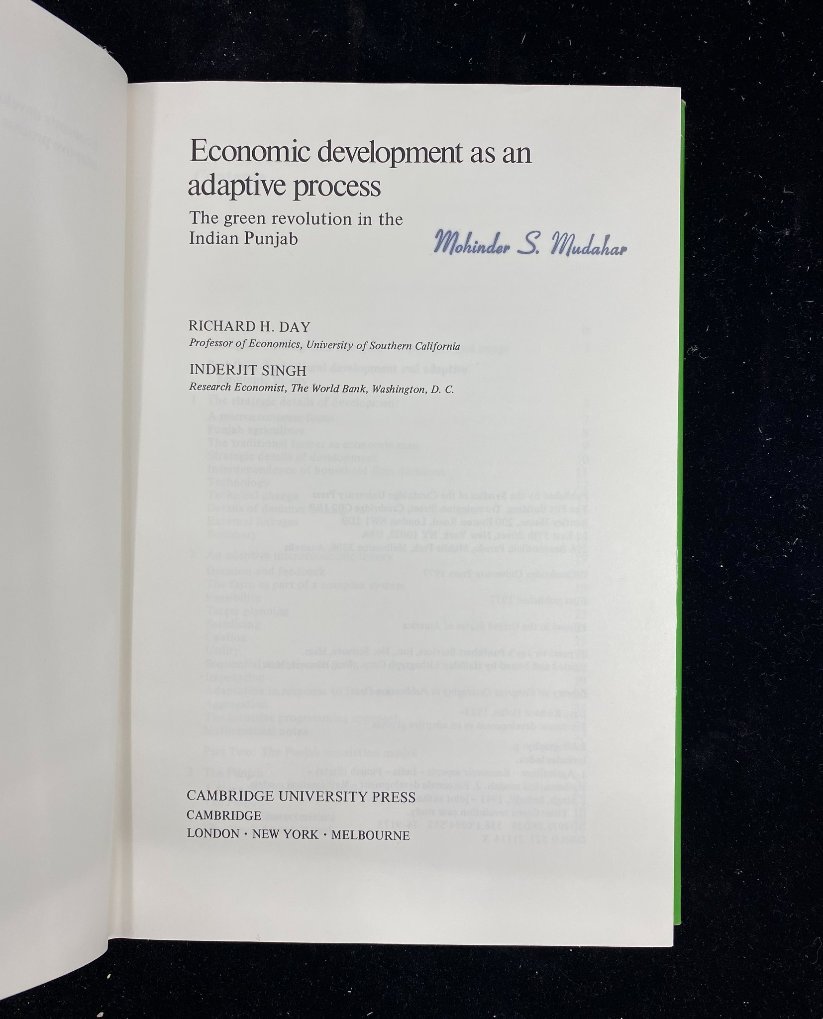 (Signed Copy , by one of the authors Inderjit Singh) Economic Development as an Adaptive Process: The Green Revolution in the Indian Punjab Day, Richard H., Singh, Inderjit