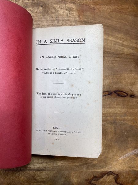 IN A SIMLA SEASON ਇਨ ਆ ਸਿਮਲਾ ਸੀਜ਼ਨ AN ANGLO-INDIAN STORY By the Author of #DamfoolSmithSahib "Lays of a Subaltern," Lahore: Printed at the Civil and Military Gazette Press BY SAMUEL T. WESTON,