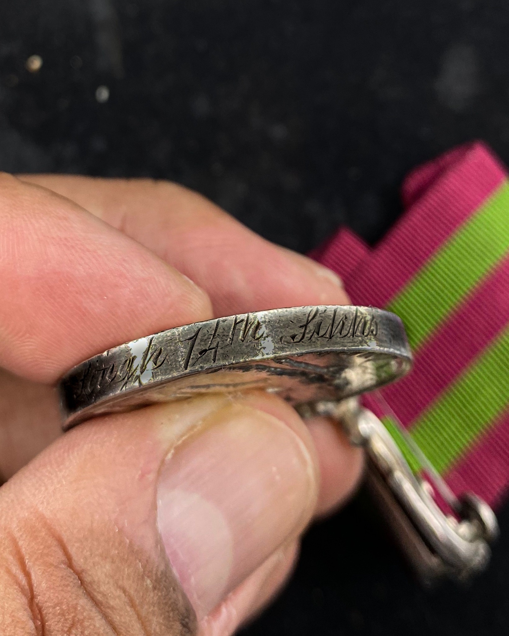 Naming: generally in running script to British and Indian units, but there are exceptions such as Punjab Frontier / Tirah to the Highland Light Infantry, which are in upright engraved sans serif capitals.