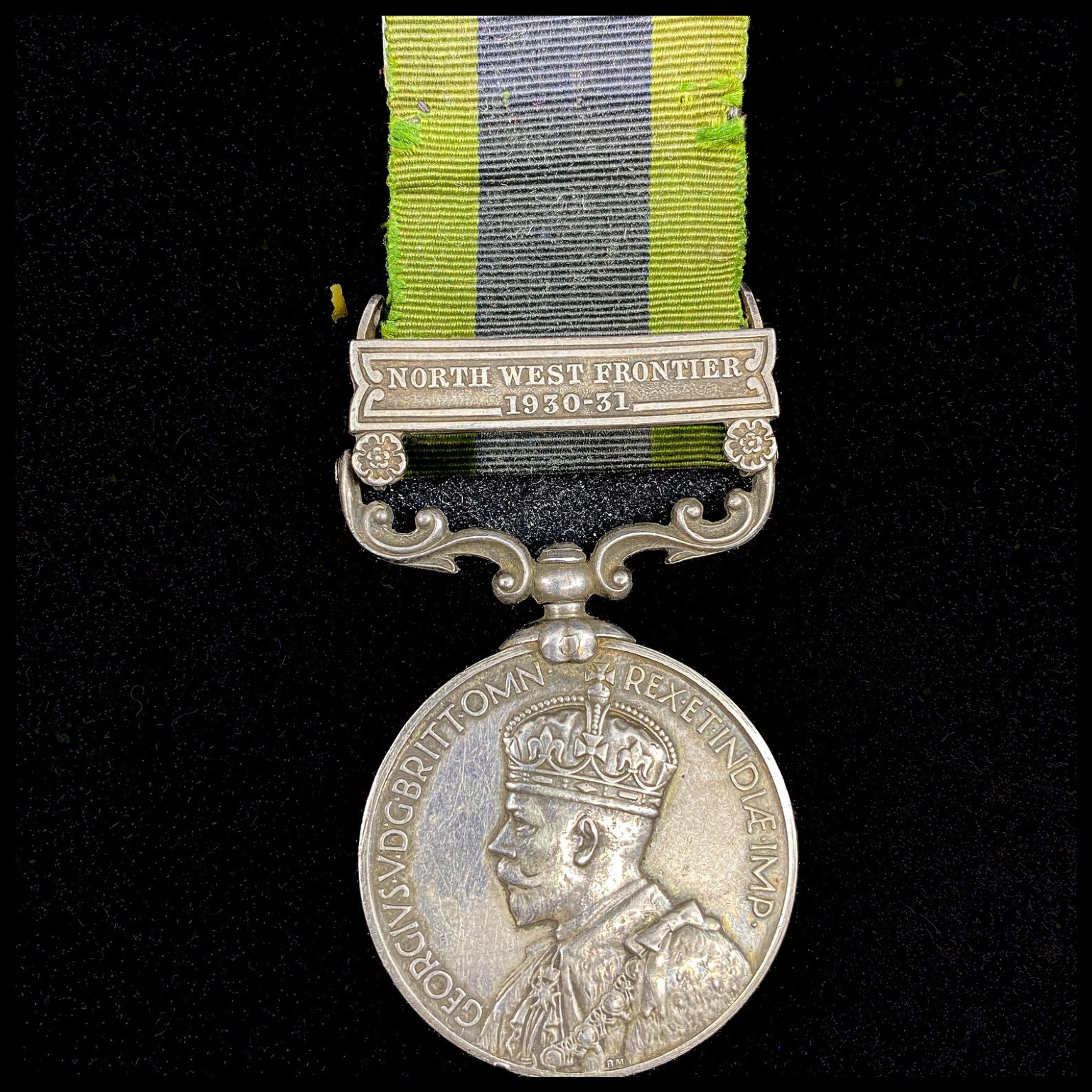 North West Frontier 1930–31 Awarded to all officers and men who were employed in the operations on the North West Frontier and served on the establishment of a unit or formation:- In the military districts of Peshawar (excluding Chitral Agency), Kohat and Waziristan between 23 April 1930 and 30 September 1930, both dates inclusive. Between 1 October, 1930 and 22 March 1931, both dates inclusive, within the following boundaries:- I). North - All exclusive. Barzar River-Khyber River to bridge on Peshawar-Jamrud road, 7½ miles from Peshawar. II). East - All inclusive. The Frontier Road from the above mentioned bridge to Narai Khwar Post; thence Frontier Road to Bara Fort - Matanni - Aimal Chabutra. III). South and West. A line from and including Aimal Chabutra to Point 2498 (5 miles N.W. Kohat); thence Administrative Border to Afghan Frontier.