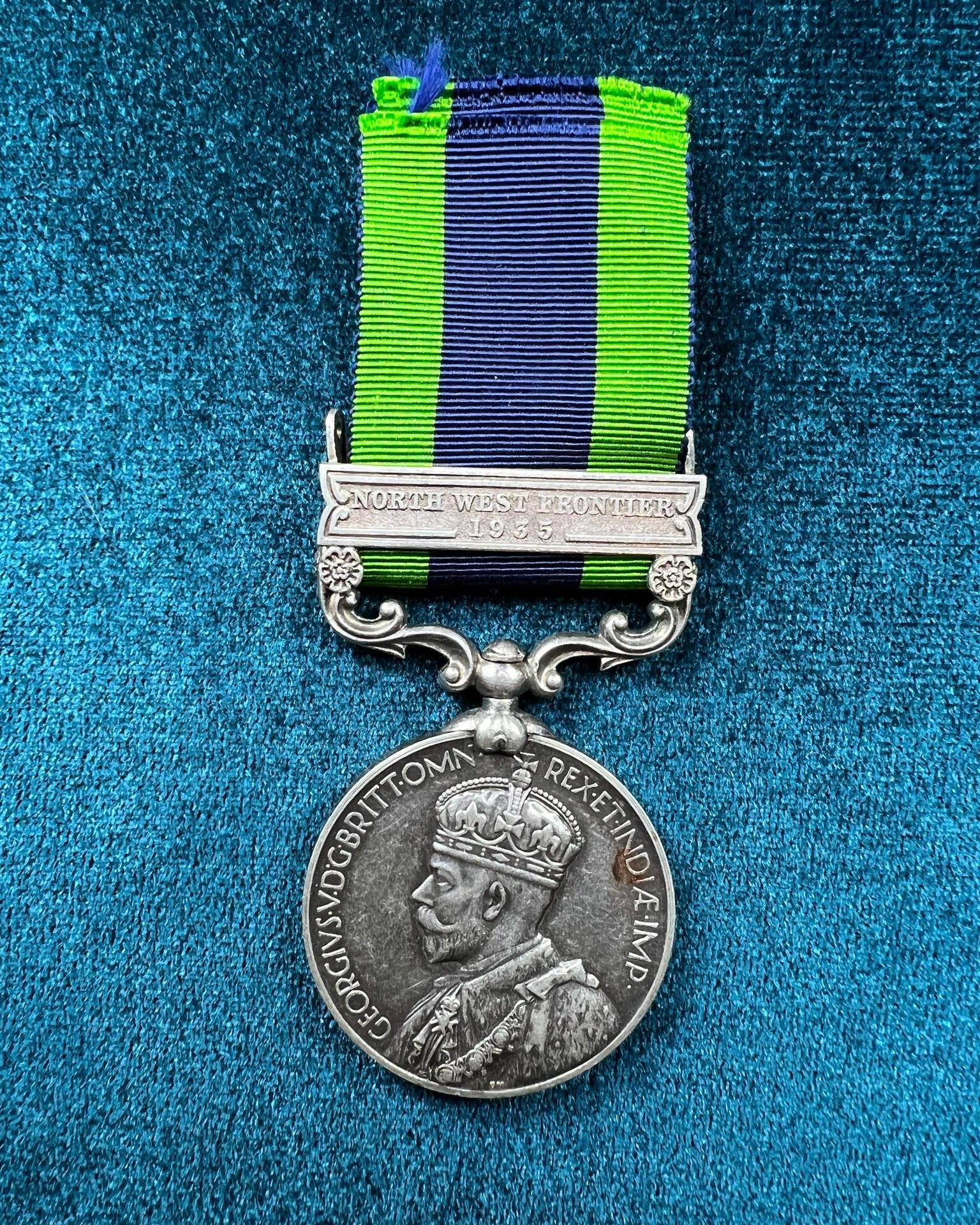 INDIA GENERAL SERVICE MEDAL, 1908-35, GVR, ONE CLASP, TO SEPOY PIARA SINGH India General Service Medal, 1908-35, GVR, one clasp, North West Frontier 1935 awarded to Sepoy Piara Singh, Indian Hospital Corps.