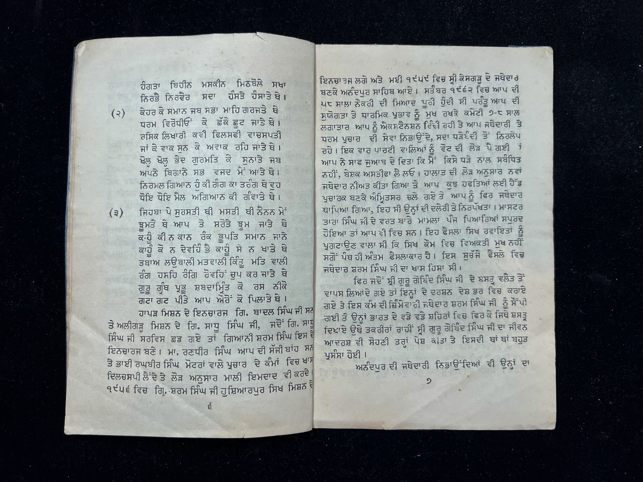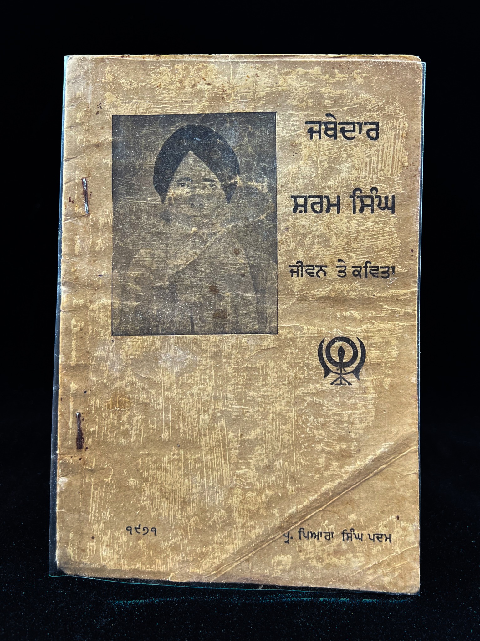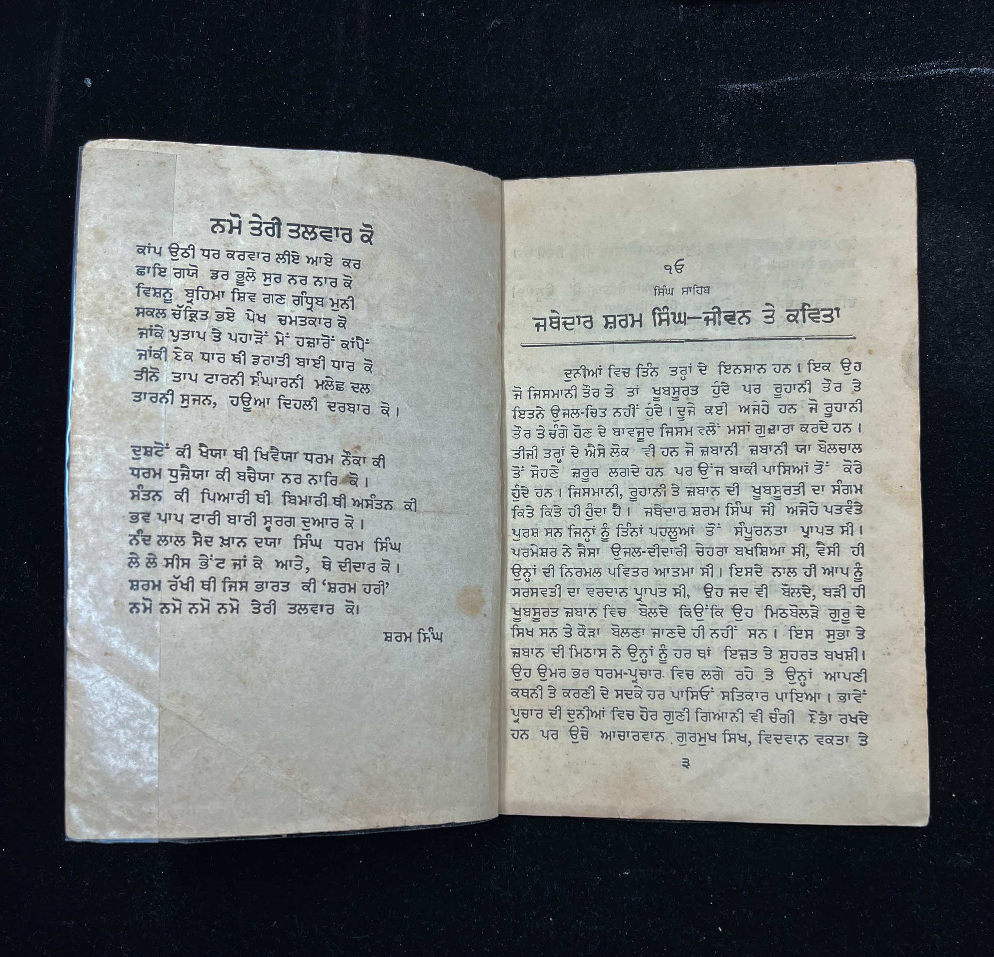 (From private collection of Jathedar Sharam Singh) Jeevan te Kavita Prof. Piara Singh Padam has compiled Jathedar Sharam Singh Ji's biography and his poetic work. Jathedar Sharam Singh Ji served as Head priest at Takhat Shri Keshgarh Sahib (situated at Shri Anandpur Sahib) from 1959 to 1971. Jathedar ji's decendents (Bibi Manjit Kaur, daughter of Jathedar ji, wife of S. Darshan Singh Lamberdar, son of S. Amar Singh Lamberdar) resided at Shri Anandpur Sahib.