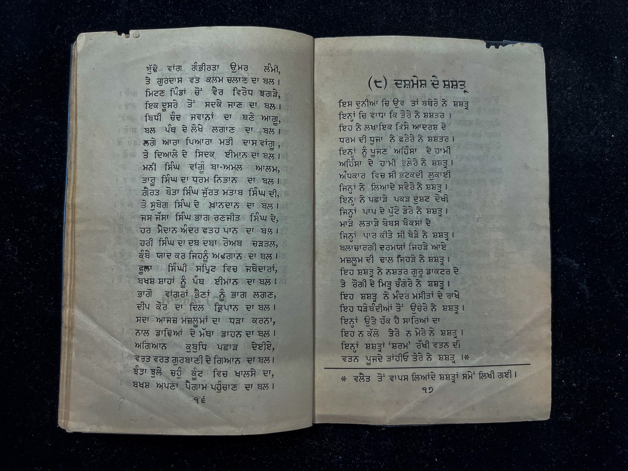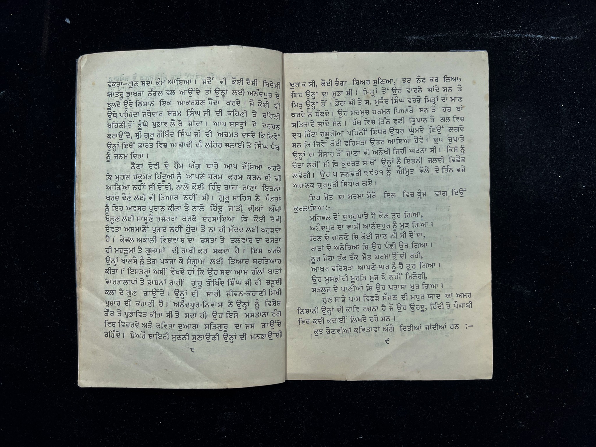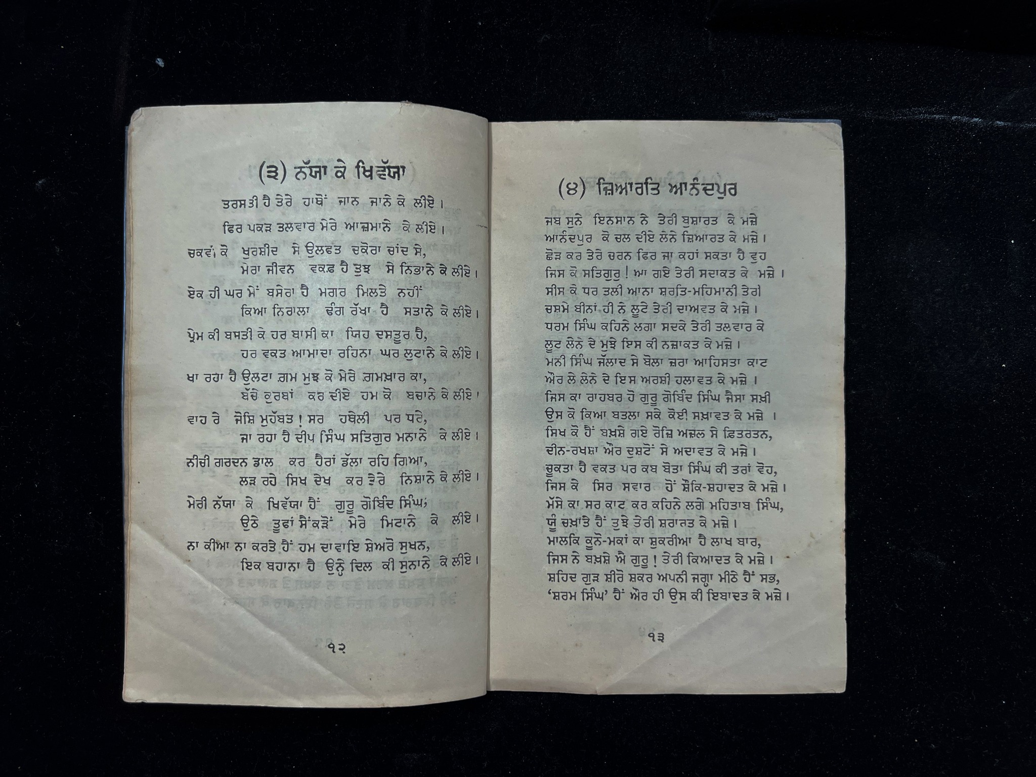 (From private collection of Jathedar Sharam Singh) Jeevan te Kavita Prof. Piara Singh Padam has compiled Jathedar Sharam Singh Ji's biography and his poetic work. Jathedar Sharam Singh Ji served as Head priest at Takhat Shri Keshgarh Sahib (situated at Shri Anandpur Sahib) from 1959 to 1971. Jathedar ji's decendents (Bibi Manjit Kaur, daughter of Jathedar ji, wife of S. Darshan Singh Lamberdar, son of S. Amar Singh Lamberdar) resided at Shri Anandpur Sahib.