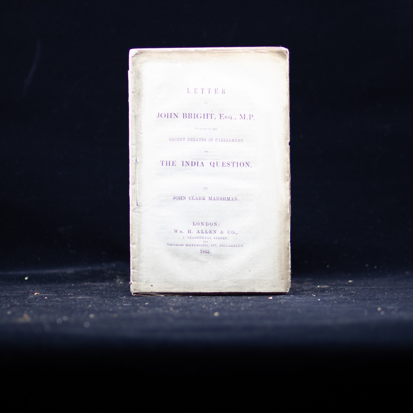 Letter to John Bright, Esq., M.P., relative to the recent debates in Parliament on the India question Author: Marshman, John Clark, 1794-1877 Author: Bright, John, 1811-1889 Note: London : Wm. H. Allen & Co., and Thomas Hatchard, 1853