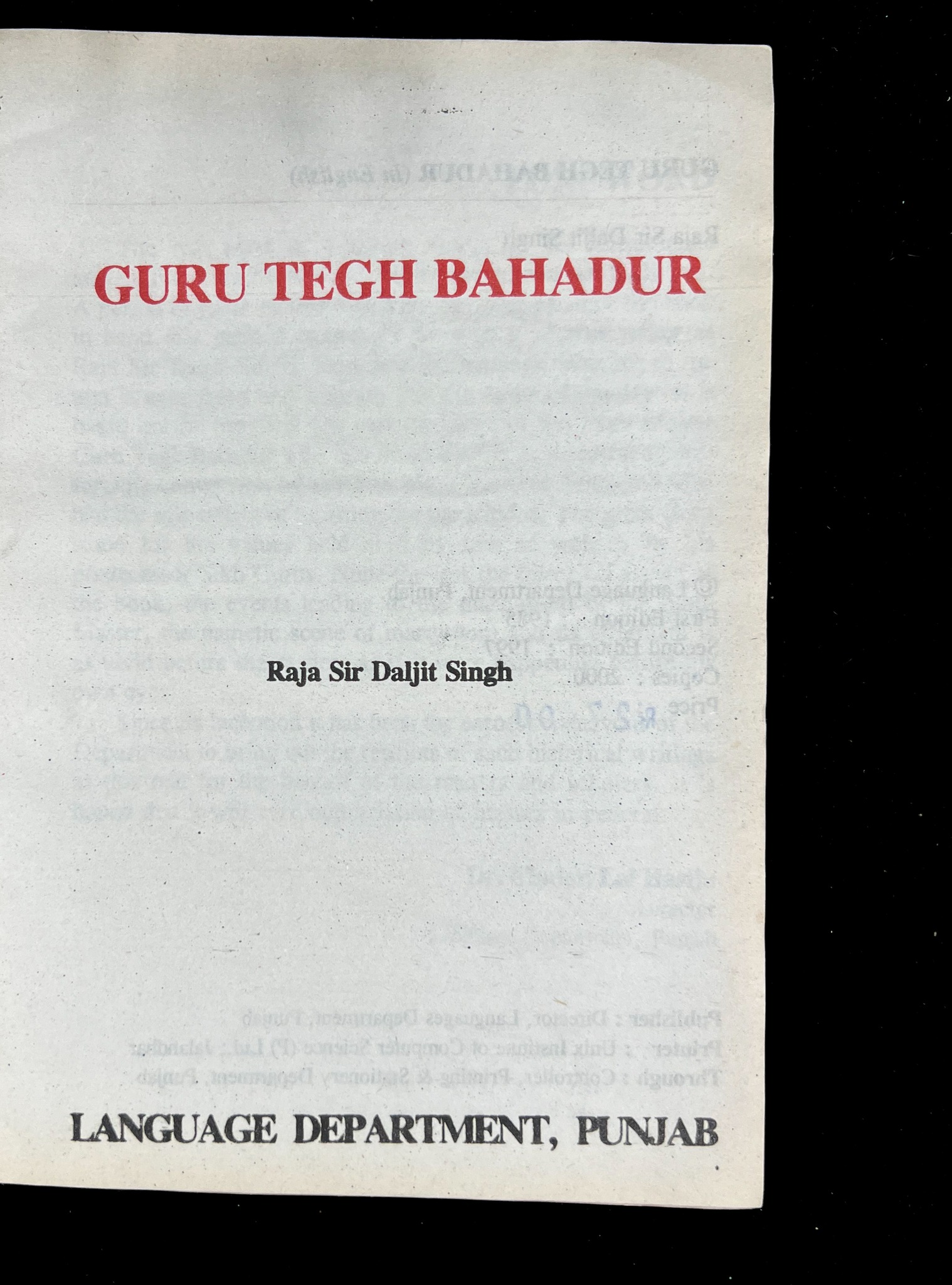 by Daljit Singh. SriGuru Tegh Bahadur ji , 1621-1675 Patiala : Languages Dept., Punjab Author: “Adopted” Son of Shimla, Raja Sir Daljit Singh. (Adopted because though he was born in Kapurthala, he loved Shimla and died there) He was indeed an amazing man – born in 1878 in Kapurthala, grandson of Maharaja Nihal Singh, the Prince spent the latter part of his life in Shimla, from 1910s to his death in 1947. After staying a few years in properties, including Jammu Castle in Kasumti, acquired a huge estate in Chotta Shimla, Strawberry Hill.