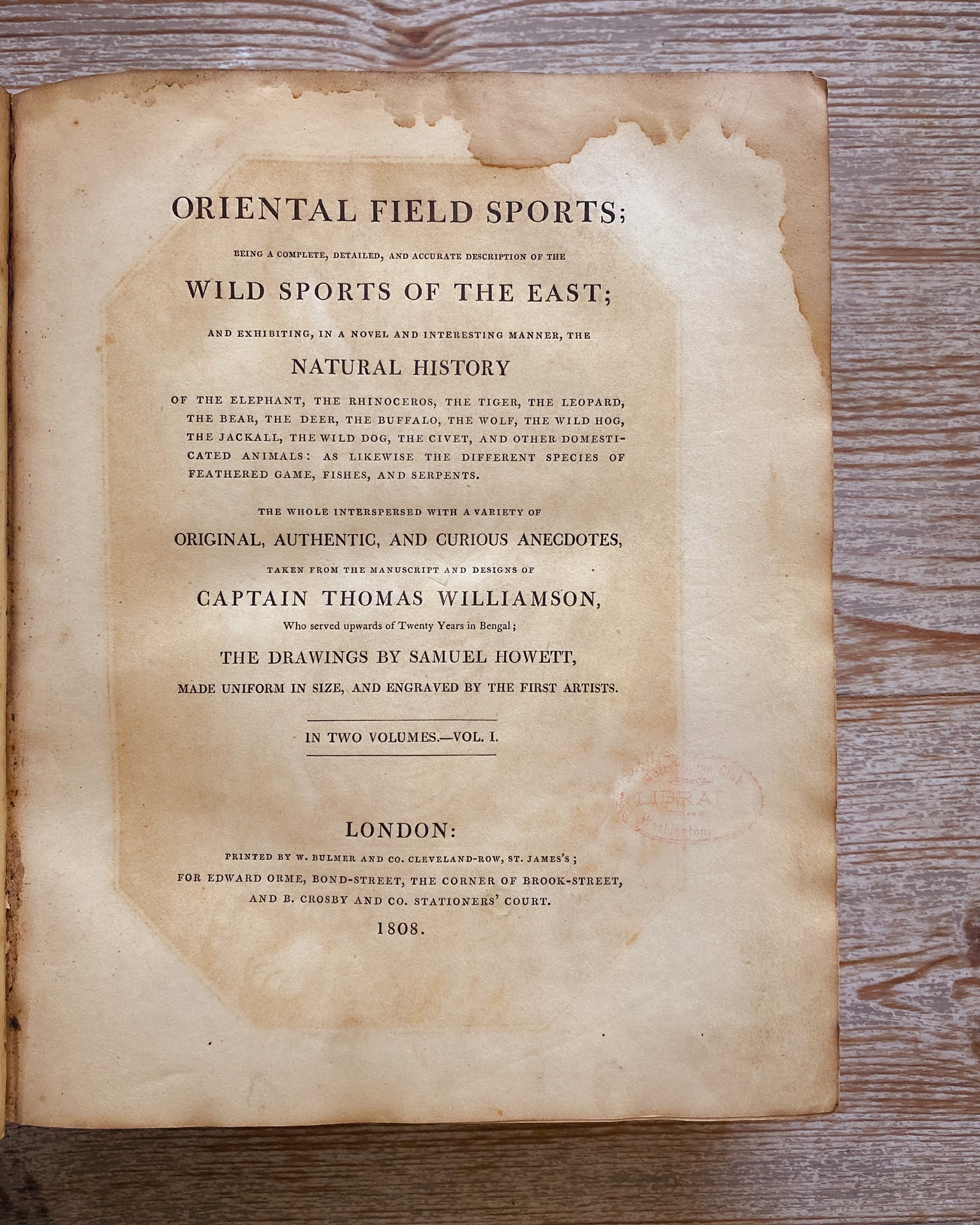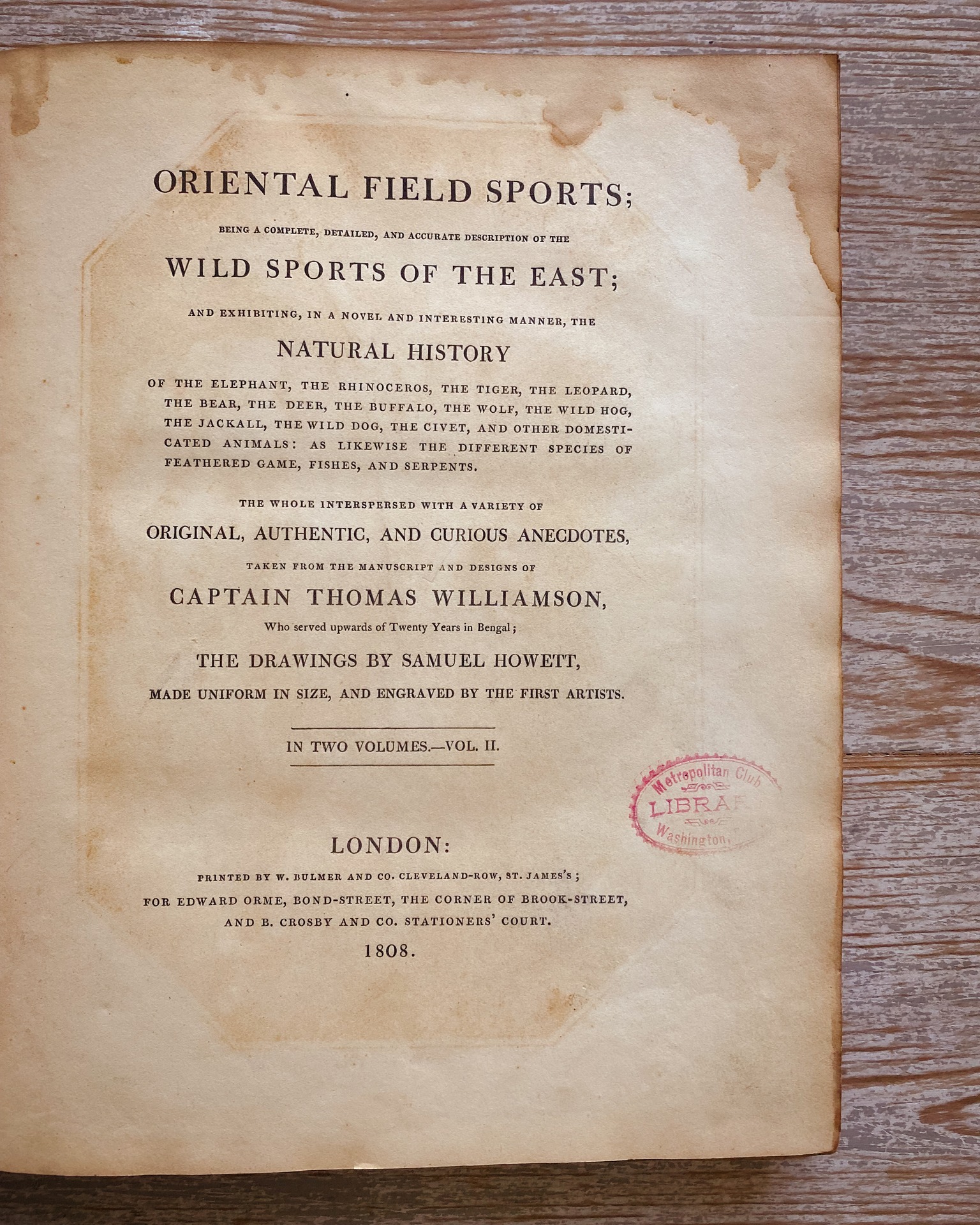 This book combines colorful illustrations with a series of anecdotes by Captain Thomas Williamson, then the Bengal Regiment of England. This two-volume series is written by Captain Thomas Williamson in collaboration with Samuel Howit. Williamson worked for the British Regiment in Bengal for 20 years and considered himself an avid sportsman. In the wild, he devoted himself to sketching the natural environment. These sketches, along with his knowledge of sports and wildlife, drew the attention of the prominent British Orme family. Edward Orme (1775-1848) was himself a British sculptor, painter, and publisher of illustrated books and directed the publication. He asked the painter Samuel Howitt (1756-1822) to develop 40 watercolors based on Williamson's illustrations. Originally published in 20 copies between 1805 and 1807, this book explores manners, customs, landscapes and costumes in non-sports areas.