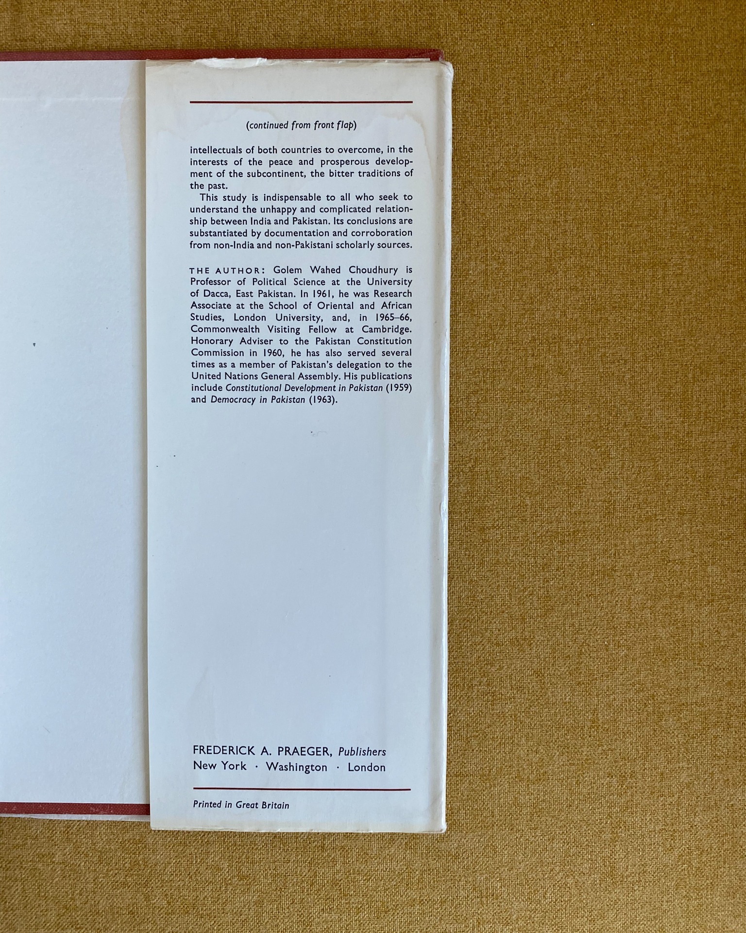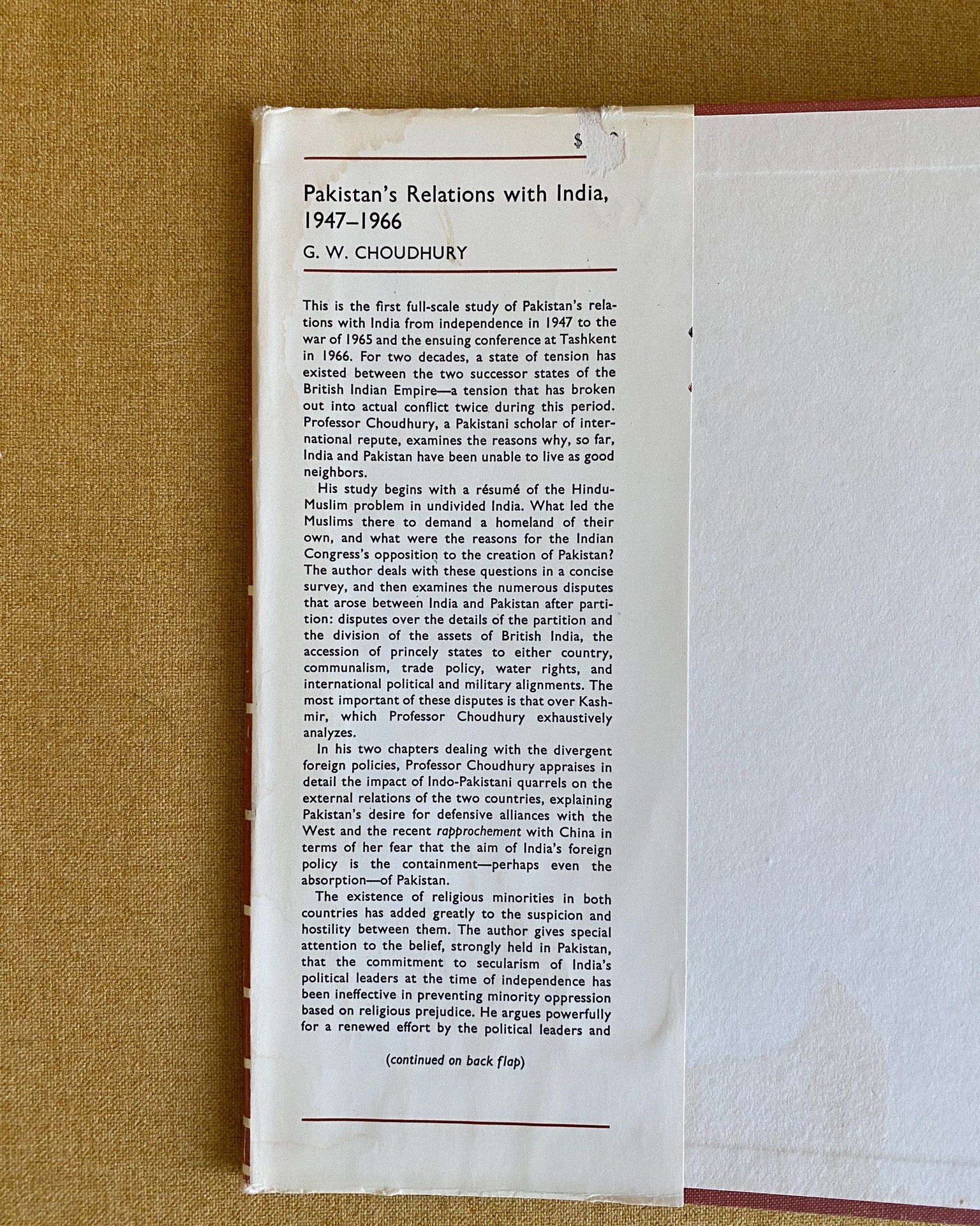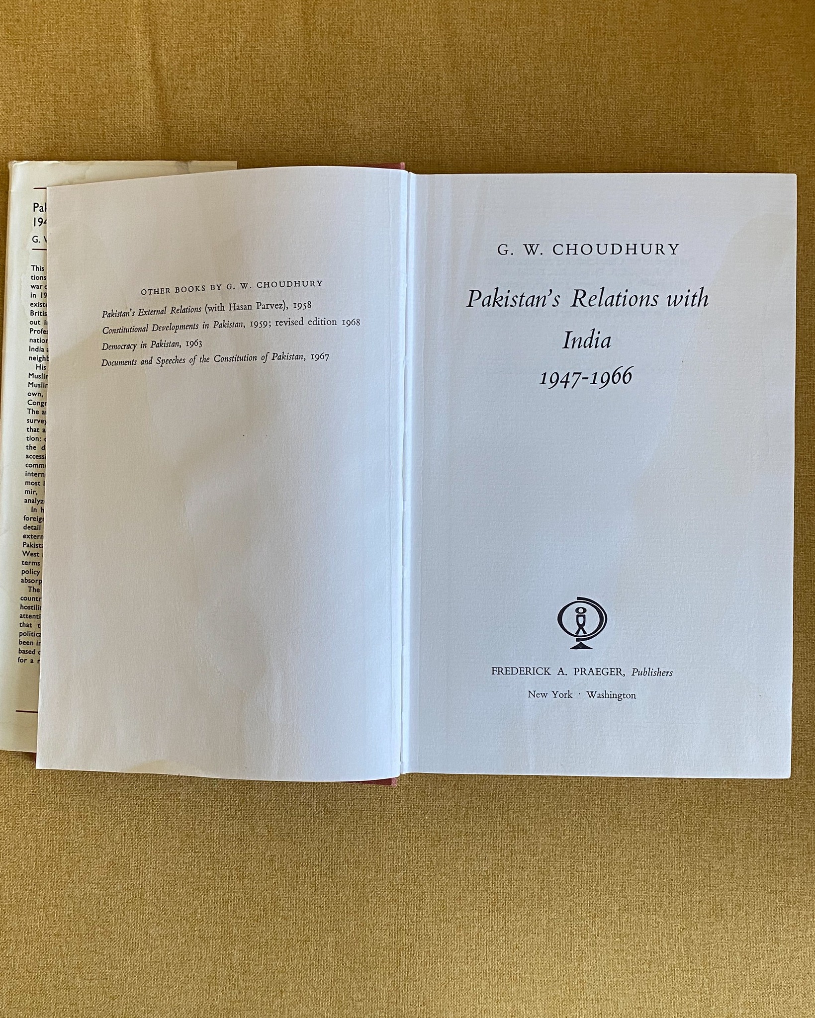 Pakistan's relations with India, 1947-1966 by Choudhury, G. W. (Golam Wahed), 1926- Publication date 1968 Topics India -- Foreign relations -- Pakistan, Pakistan -- Foreign relations -- India Publisher New York, Praeger Author Golam Wahed Choudhury Born 1926 Madaripur District, Bengal Presidency, British India Died 13 December 1997 (aged 71) Washington, D.C., United States Golam Wahed Choudhury (1926 – 13 December 1997) was a political scientist and diplomat from East Pakistan, which later became Bangladesh. He worked as the Director General of the Research Division of the Pakistani foreign ministry and later as Pakistan's Minister of Communications. After the separation of Bangladesh, he returned to academic work. He authored several books on Pakistan's international relations, and taught at the University of Dhaka, Royal Institute of International Affairs (England), Columbia University and other institutions.