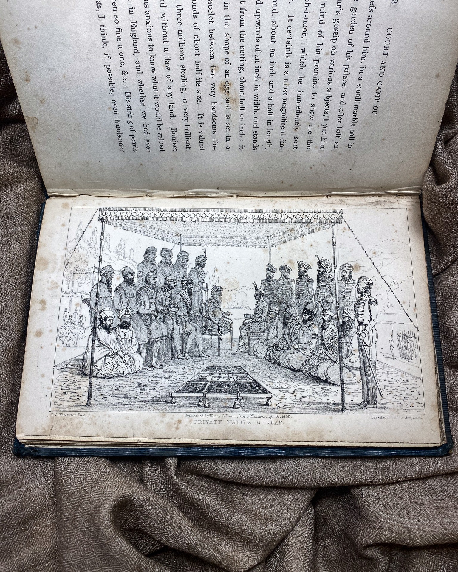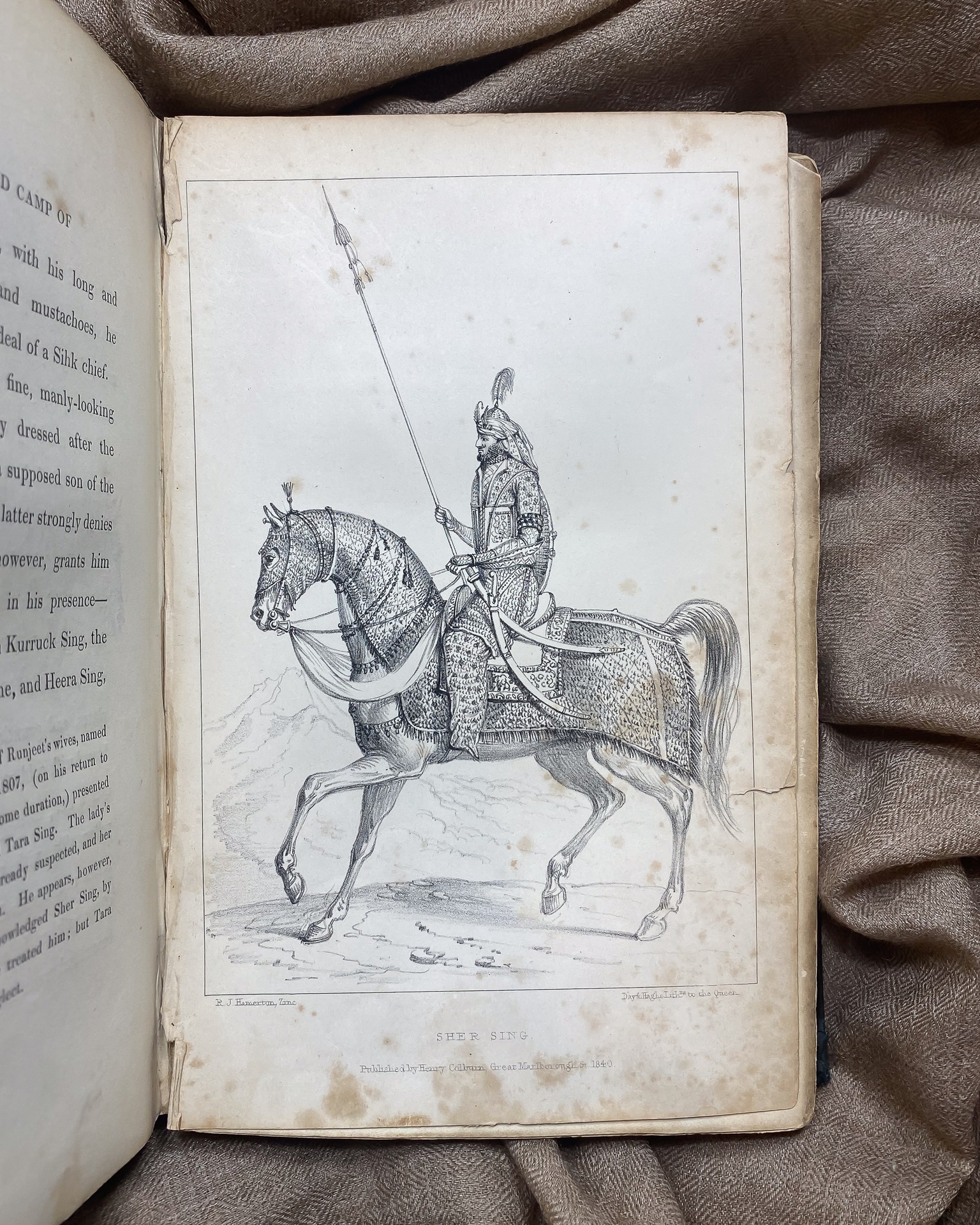 Engravings and Visual Representation: The first edition features numerous engravings, including images of Runjeet Singh on horseback, Akali warriors, Sikh armour, and Fakirs, providing a visual reference to the era and personalities involved. Author's Expertise and Role: As the military secretary to Lord Auckland, Osborne's firsthand experiences and privileged access contribute to his accurate observations, providing valuable insights into the political, military, and cultural aspects of the Sikh Empire. Conclusion: W.G. Osborne is a significant historical work that immerses readers in the courtly and military spheres of the Sikh Raj.