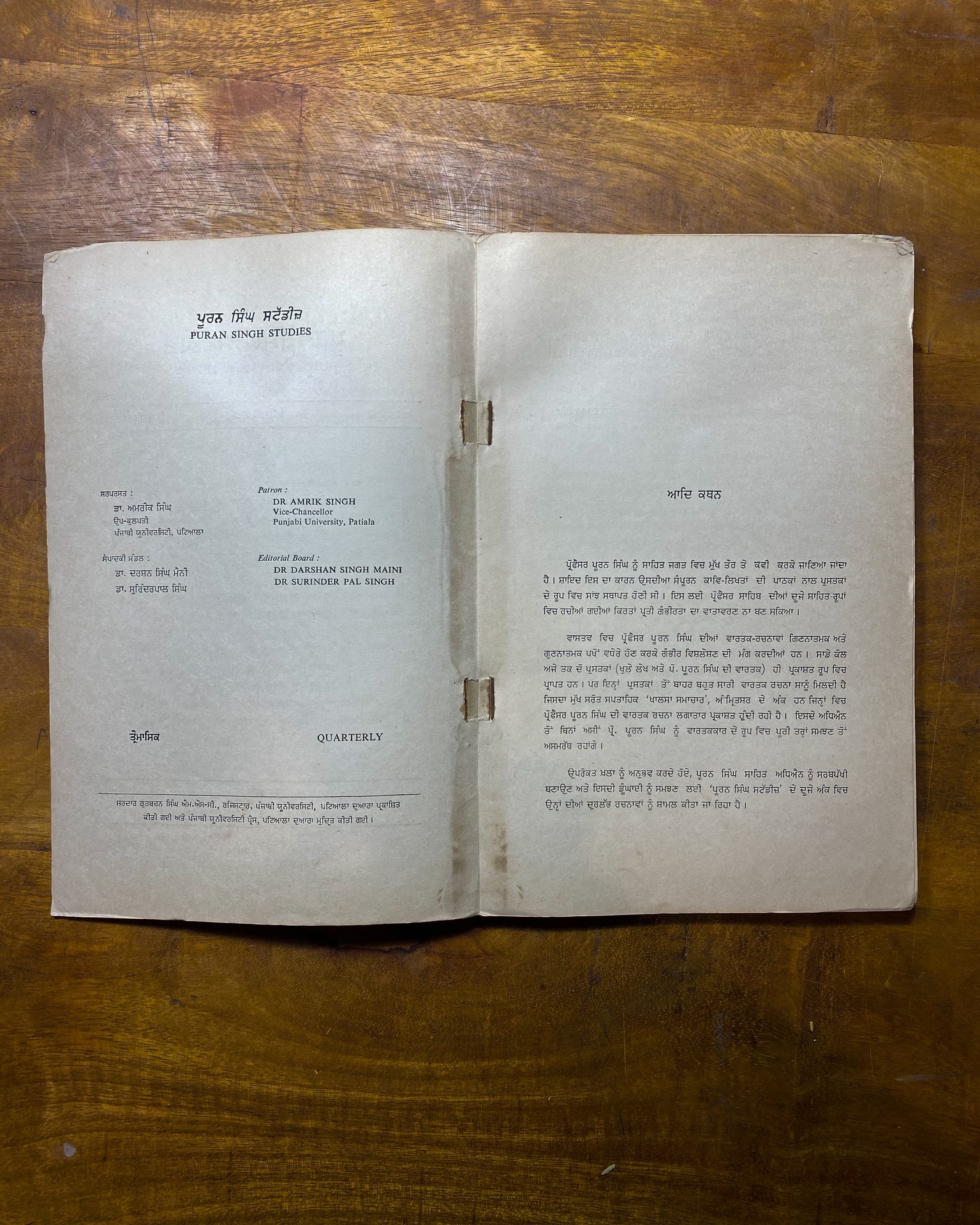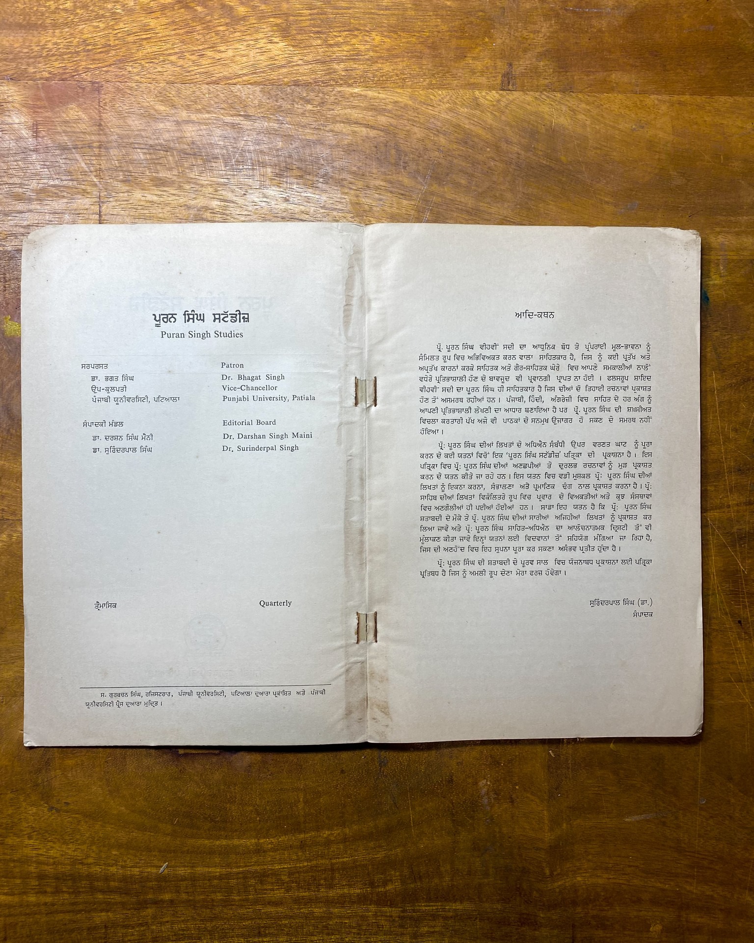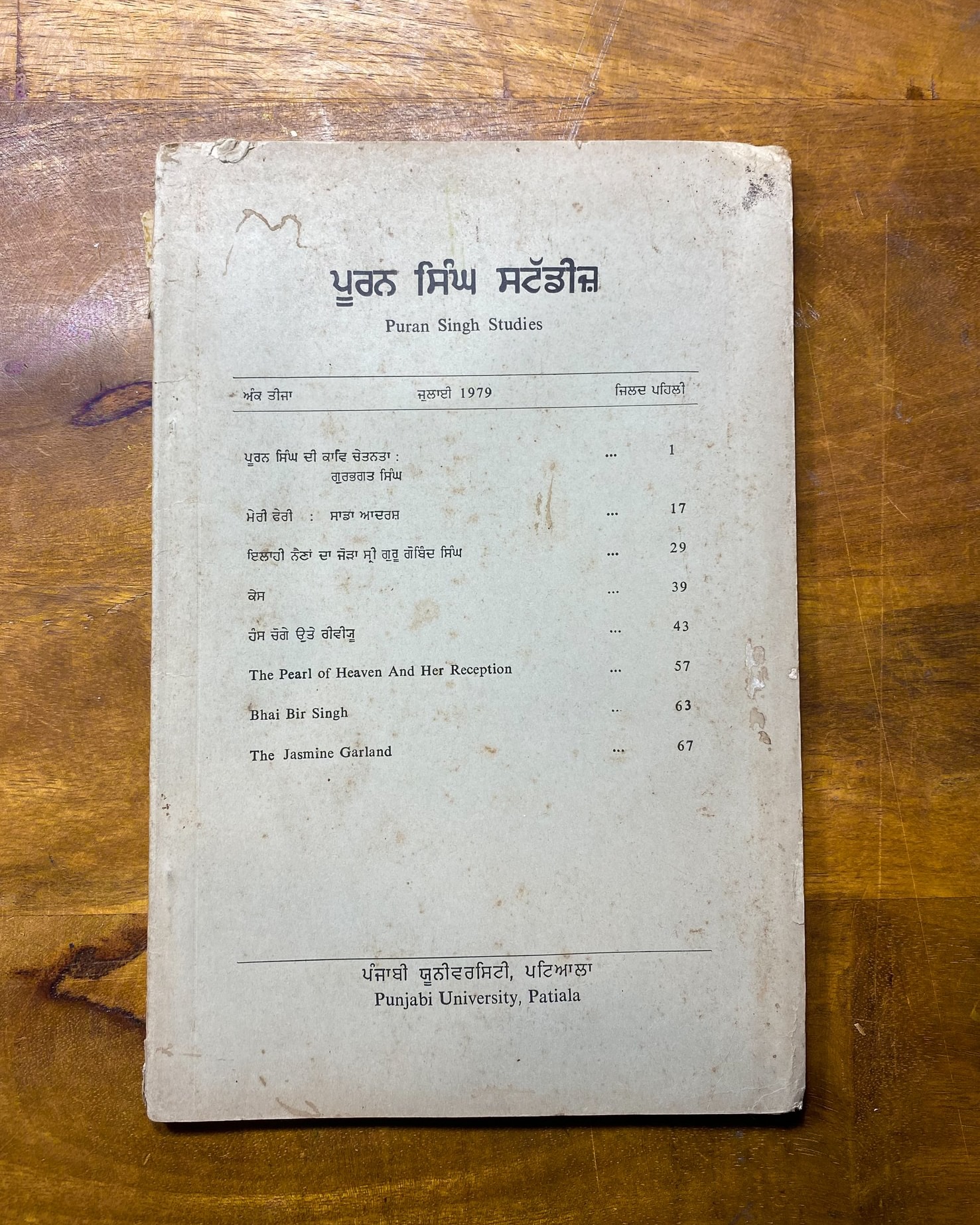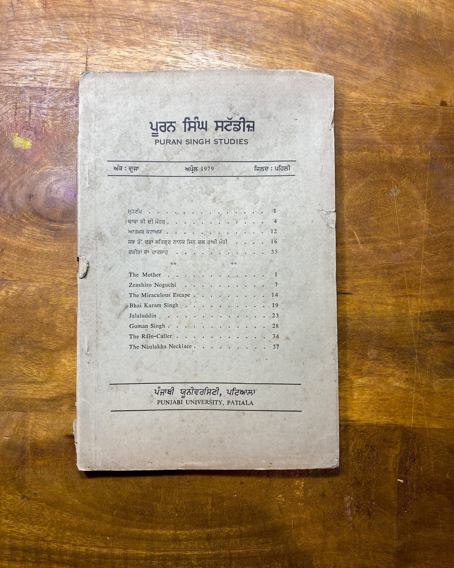 Puran Singh Studies Two volumes: July 1979, April 1979 Printed by Punjabi University #PuranSingh: Notable Punjabi poet, scientist, and mystic. Pioneer of modern Punjabi poetry. #JapanInfluence: Inspired by Okakura Kakuzo and Walt Whitman, shaping his poetic style and worldview. #SpiritualJourney: Embarked on a monkhood under Swami Ram Tirath, found his path back to sikhi through Bhai Vir Singh's influence. #ScienceAndBusiness: Expertise in distilling essential oils, soap-making, and research in Dehra Dun. #ProfessionalEngagements: Transformed arid land in Gwalior, worked at a sugar factory, and cultivated rosha grass. #Legacy: Celebrated for profound contributions to Punjabi literature, a revered figure in Punjabi culture. Dive into the extraordinary life and remarkable works of Puran Singh, a multifaceted visionary who left an indelible mark on poetry, spirituality, and the pursuit of knowledge.