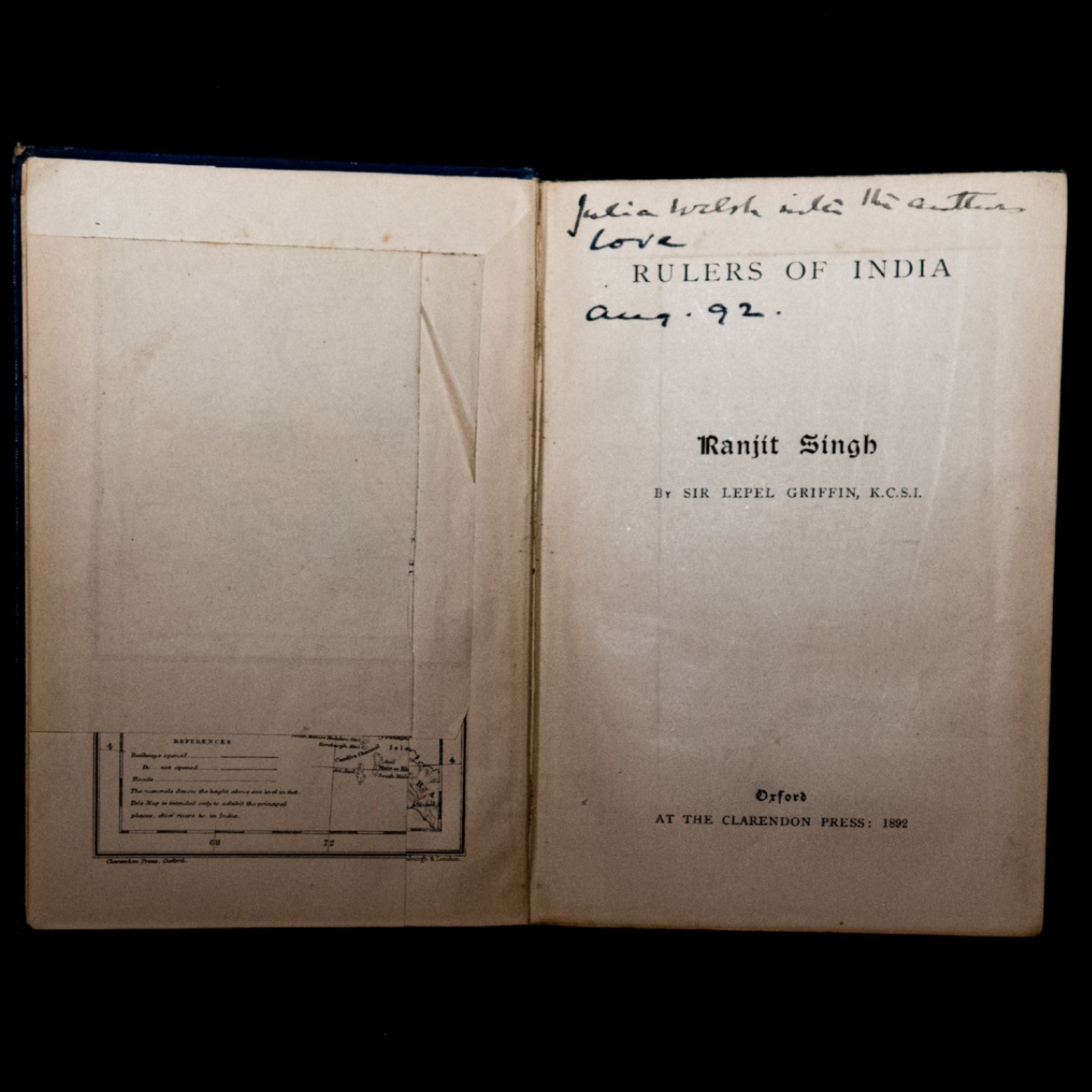 1892. First Edition. 223 pages. No dust jacket. Signed by the author. Blue cloth with gilt lettering to spine and front board. Inscribed by the author to title page: 'Julia Welsh with the author's love, Aug 92'. Includes a black and white folded map to front. Pages are lightly tanned with mild foxing throughout. Heavier to endpapers and pastedowns. Mild cracking to hinges and gutters, slightly exposing netting. However binding remains firm. Water staining to pastedowns, with minor marks to text block edges. Text is unaffected. Noticeable tears and creases to folded map, causing it to be loose. Boards have visible edge wear with corner bumping. Moderate tanning to spine and edges with some crushing to spine ends. Noticeable splits with fraying to joints and spine edges. Gilt lettering is darkened. Visible water staining with black marks to all surfaces. Book is slightly bowed and forward leaning.