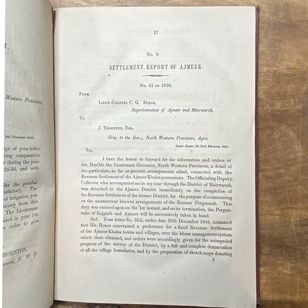 Report on Ajmeer and Mairwara Illustrating the Settlement of the Land Revenue and the Revenue Administration of Those Districts : Up to the Commencement of A.D. 1853 Report on Ajmeer and Mairwara: Settlement of Land Revenue and Revenue Administration" offers valuable insights into revenue collection and administration in these districts up to 1958. Prepared by Lieutenant-Colonel A.D. DllOIt, it explores the process of land revenue settlement, considering local agricultural practices and soil fertility. The report also outlines the administrative structure and challenges faced in revenue collection. Providing historical context, it sheds light on socio-economic conditions during that period. This significant historical document serves as a vital resource for researchers and policymakers, offering a comprehensive understanding of land revenue's impact on regional development.