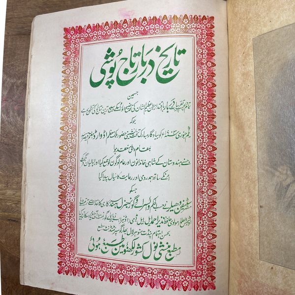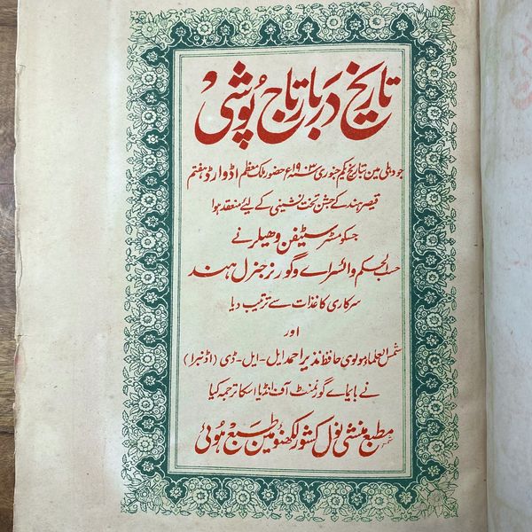 ਲੇਖਕ: ਸਟੀਫਨ ਵ੍ਹੀਲਰ ਪ੍ਰਕਾਸ਼ਕ: ਮੁਨਸ਼ੀ ਨਵਲ ਕਿਸ਼ੋਰ, ਲਖਨਊ ਮੂਲ: ਲਖਨਊ, ਭਾਰਤ ਪ੍ਰਕਾਸ਼ਨ ਸਾਲ: 1903 ਭਾਸ਼ਾ: ਉਰਦੂ ਸ਼੍ਰੇਣੀਆਂ: ਇਤਿਹਾਸ ਅਨੁਵਾਦਕ: ਡਿਪਟੀ ਨਜ਼ੀਰ ਅਹਿਮਦ ਸਹਿਯੋਗੀ: ਅੰਜੁਮਨ ਤਰਕੀ ਉਰਦੂ (ਹਿੰਦ), ਦਿੱਲੀ ਕਿਤਾਬ ਵਿੱਚ ਲਾਲ ਅਤੇ ਹਰੇ ਰੰਗ ਵਿੱਚ ਛਾਪੇ ਦੋ ਲਿਥੋਗ੍ਰਾਫਿਕ ਸਿਰਲੇਖ ਪੰਨੇ ਹਨ, ਜਿਸ ਵਿੱਚ 48 ਹਾਫਟੋਨ ਫੋਟੋਗ੍ਰਾਫਿਕ ਪਲੇਟਾਂ ਹਨ। ਇਹ ਪਲੇਟਾਂ ਮੁੱਖ ਤੌਰ 'ਤੇ ਮਹਾਰਾਜਿਆਂ ਦੀਆਂ ਤਸਵੀਰਾਂ ਦਿਖਾਉਂਦੀਆਂ ਹਨ, ਜਿਸ ਵਿੱਚ ਐਡਵਰਡ VII, ਕਰਜ਼ਨ, ਡਿਊਕ ਆਫ਼ ਕੈਂਟ, ਅਤੇ ਉਨ੍ਹਾਂ ਦੇ ਪਰਿਵਾਰਾਂ ਦੇ ਨਾਲ-ਨਾਲ ਦਰਬਾਰ ਦੇ ਦ੍ਰਿਸ਼ ਵੀ ਸ਼ਾਮਲ ਹਨ। ਲਿਖਤ ਉਰਦੂ ਵਿੱਚ ਹੈ ਅਤੇ ਸਾਰੀ ਕਿਤਾਬ ਵਿੱਚ ਲਿਥੋਗ੍ਰਾਫ਼ ਕੀਤਾ ਗਿਆ ਹੈ