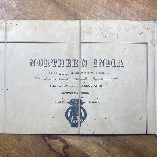 The Automobile Association of Northern India Road Map The Mall Lahore, Large folding map, linen back, of the Punjab and its roadways, undated, c.1920. Scale 1inch to 16miles. Double sides, coloured in outline "Discover a fascinating piece of history! The Automobile Association of Northern India Road Map is a large folding map, dating back to the early 1920s. It showcases the roadways of the Punjab region with detailed outlines and colorful features. Printed on linen for durability, this map served as a valuable resource for motorists of that era. Take a journey back in time and explore the Punjab's road network through this vintage map.