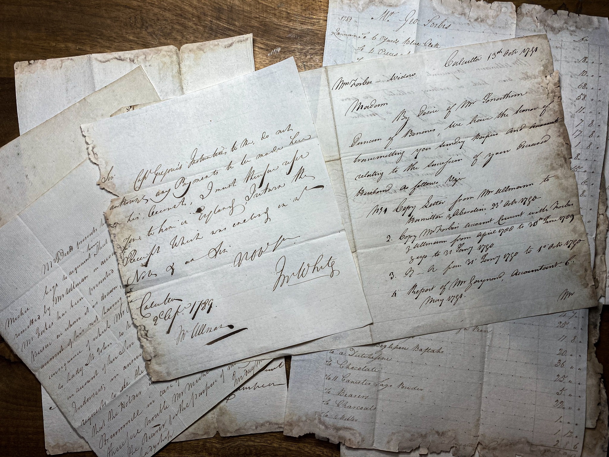 The BL records do show marriage records for them and children. It is possible that Forbes married his wife and children may not have traveled to India until the children were born for instance. Isabella was born in Hampshire, 1773. A search of the East India Company databases shows that George Forbes entry in the Bengal Despatches for 1780-81. It appears that John William was from Strasberg (Strasbourg). After reading for some years in Bengal, India, he travelled to the USA and died in 1811 (age 56) in Delaware. The BL records also show his family records. Find my past records that George Forbes was buried as the 22 October 1780 in Bombay. The original records provided * Past Copy of G. Forbes. Will * Supreme Court document with excellent 2 inch Red Seal, dated 1787 concluded at Fort William in Bengal. Cover a prosecution between Forbes and a Mr. Day who wrap the subject of jurisdiction * 22 page business matters with signed statement dated 6 may 1791 * 14 page supreme court document dated 1786 with singed statement by a Mr. Hyde ( “I do herby certify that I have taxed these costs -----” Note. The handwritten document shows very clear cash flow purchase/sales, listed Items and when they were expended for each of the year 1788 – 1791 and examination of the Books of Accounts signed by Mr. Gaynard Accountant. EAST INDIA COMPANY "The East India Company was a phenomenon, a huge business enterprise that in effect ruled a subcontinent from the 17th to the 19th centuries. It raised private armies, employed generals, fought pitched battles against other European colonists, founded towns and made vast fortunes for those involved. For young men hoping to make their way in the world of the burgeoning British Empire, it was one of the most exciting, dynamic and promising avenues to success. The Company traded in silk, cotton, opium, indigo dye, saltpetre and tea, and after its famous general, Robert Clive, defeated the French at Plassey in 1757, it ran India as a virtual monopoly. When Henry Dundas became President of the Board of Control in 1784, he began to appoint Scotsmen to key positions, so much so that by the end of the 18th century, they dominated the activities of the East India Company, their connections reaching back to Scotland. " from Glenbuchat Heritage website, quoting extract from a Daily Mail article " Forbes & Company Ltd., the erstwhile Forbes Gokak Ltd., based in Bombay is the oldest registered company in India, and one of the oldest in the world which is in the same business. It was established by John Forbes of Aberdeenshire ,Scotland in 1767. Over the past few years, the management of the company moved from the Forbes family to the Campbells, to the Tata Group, and finally to the Shapoorji Pallonji Group, leaders in infrastructure, construction and real estate businesses. Forbes & Company Limited is involved in three main areas: * Engineering * Shipping & logistics * Business automation