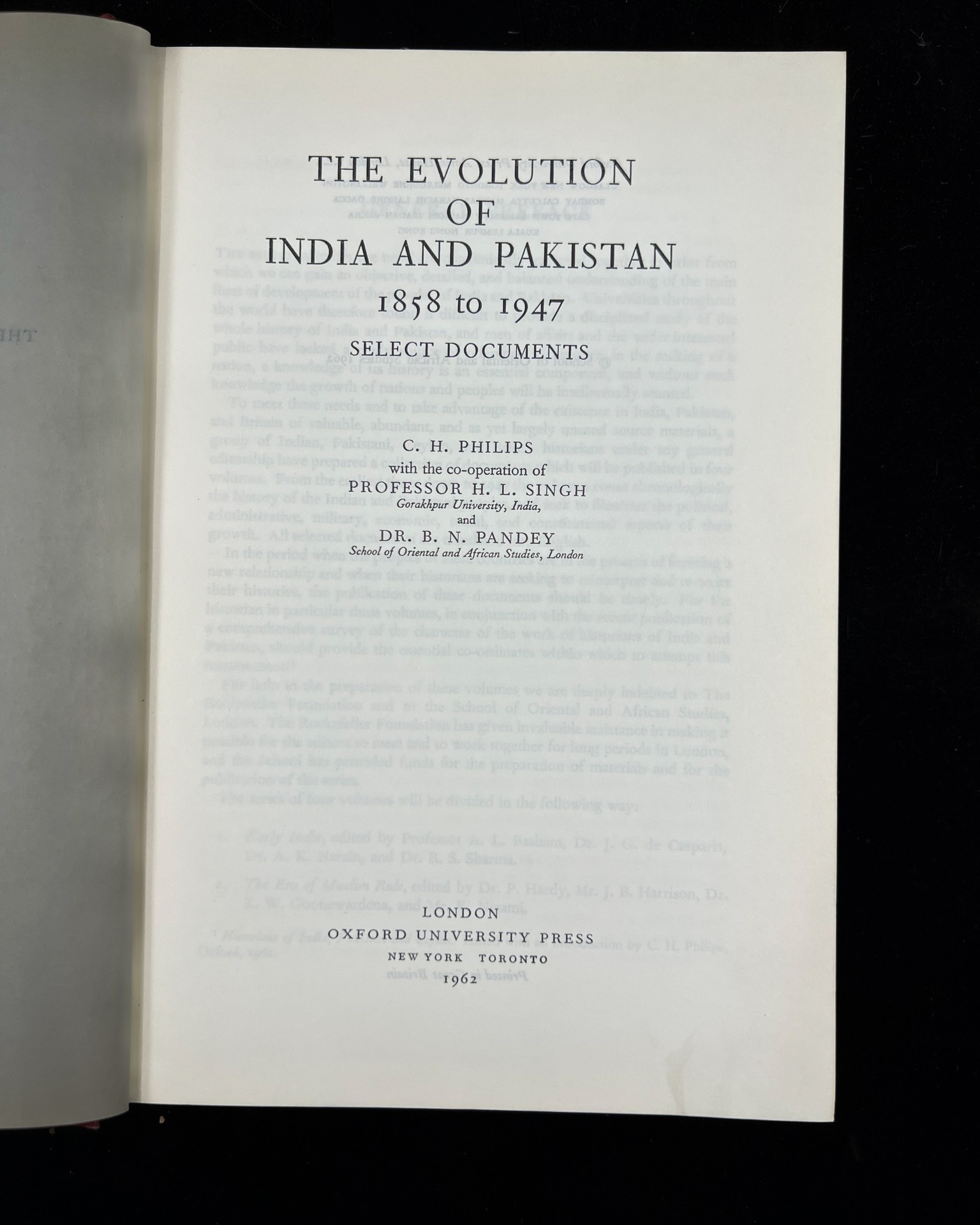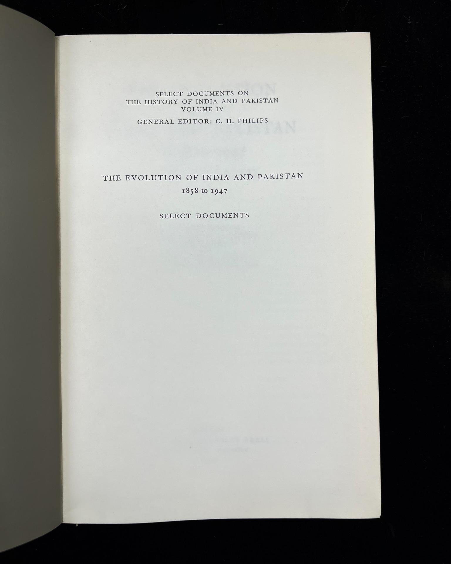 THE EVOLUTION OF INDIA AND PAKISTAN 1858 to 1947 SELECT DOCUMENTS C. H. PHILIPS with the co-operation of PROF. H. L. SINGH Gorakhpur University, India, and DR. B.PANDEY School of Oriental and African Studies, London OXFORD UNIVERSITY PRESS NEW YORK TORONTO 1902