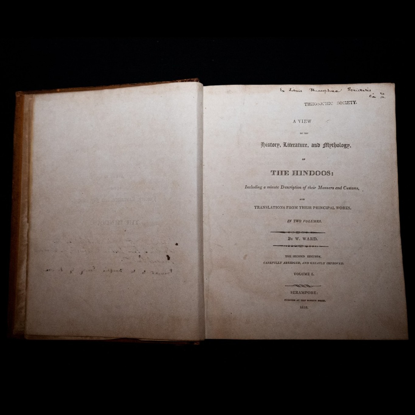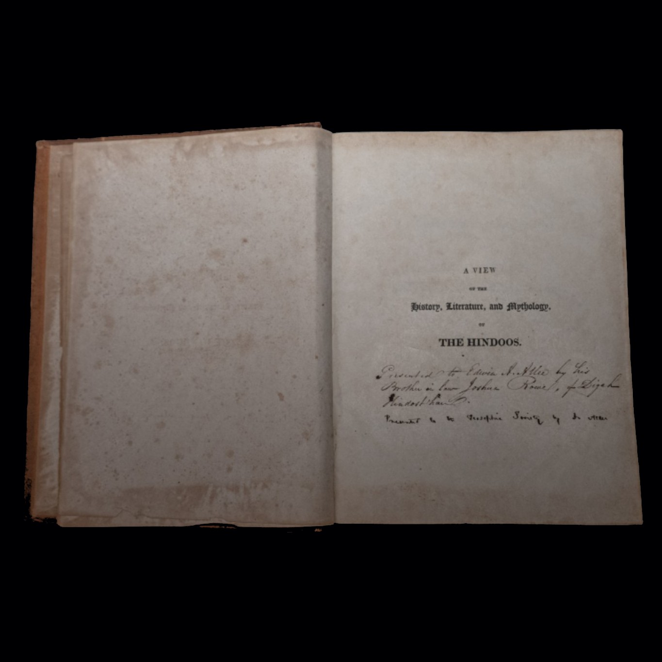 Volume 4 includes translations from Hindu sacred texts and philosophical writings, and Ward's own reflections on education. The book provides details on Hindu literature, mythology and religion. These subjects of study include the history of Hindu gods and goddesses, different forms (birds, fish, trees, stones and rivers) as well as the time of worship, Hindu rituals, duties, customs and traditions, Hindu saints and Hindu sects. These subjects are categorised as detailed chapters in the book supported by literature from religious books and manuscripts.