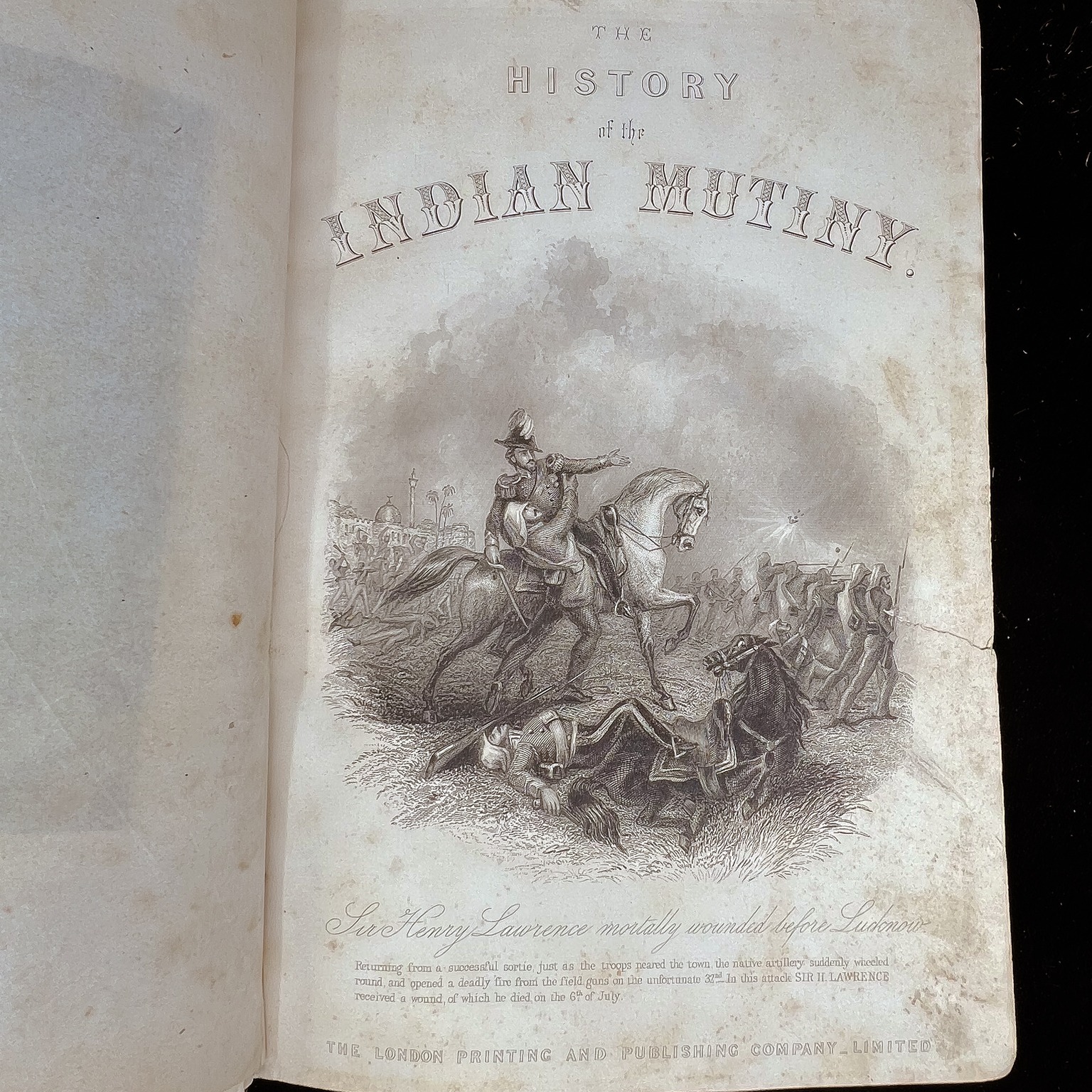 (FROM LIEUTENANT COLONEL A.C.D. PIGOTT’S PERSONAL COLLECTION) The History Of The Indian Mutiny, 2 Vols. by Ball, Charles Giving a detailed account of the sepoy insurrection in India, and a concise history of the great military events which have tended to consolidate the British Empire in Hindostan EDITOR: Charles Ball PUBLISHER: The London Printing and Publishing Company- Limited https://archive.org/details/in.ernet.dli.2015.501807/page/n9/mode/2up
