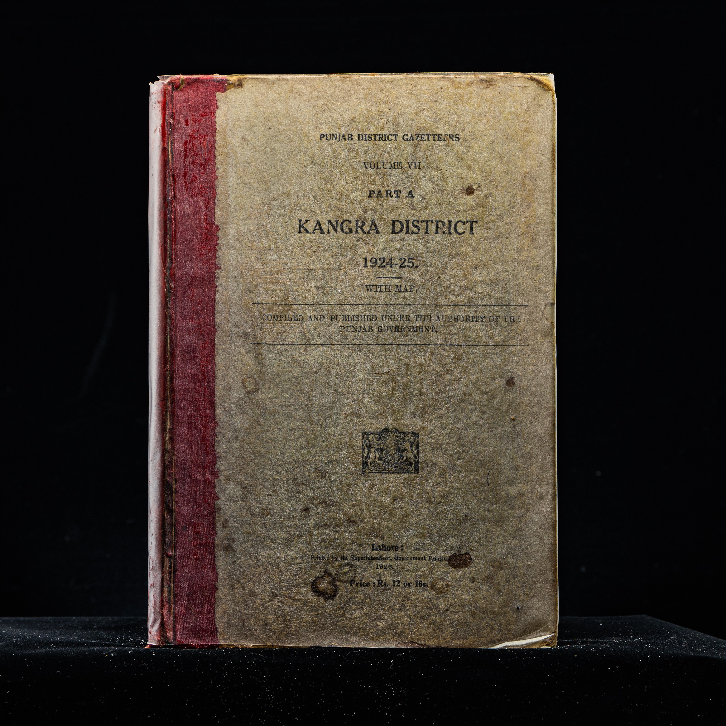 Consists of information about geographical, topographical features such as river systems, Geology, Fauna and Flora such as wild animals and plant species; demographic patterns such as births and deaths, socio-religious variations such as distinctions of caste, religion and language, dress, housing and food patterns; major occupations in agriculture, industry and commerce; governmental, administrative and financial management systems. Kangra lies in the lap of the Himalayan Dhauladhar Range, during the British rule Kangra comprised 2,763 square miles . After the Anglo-Sikh war of 1846 Kangra came under the direct control of the British.