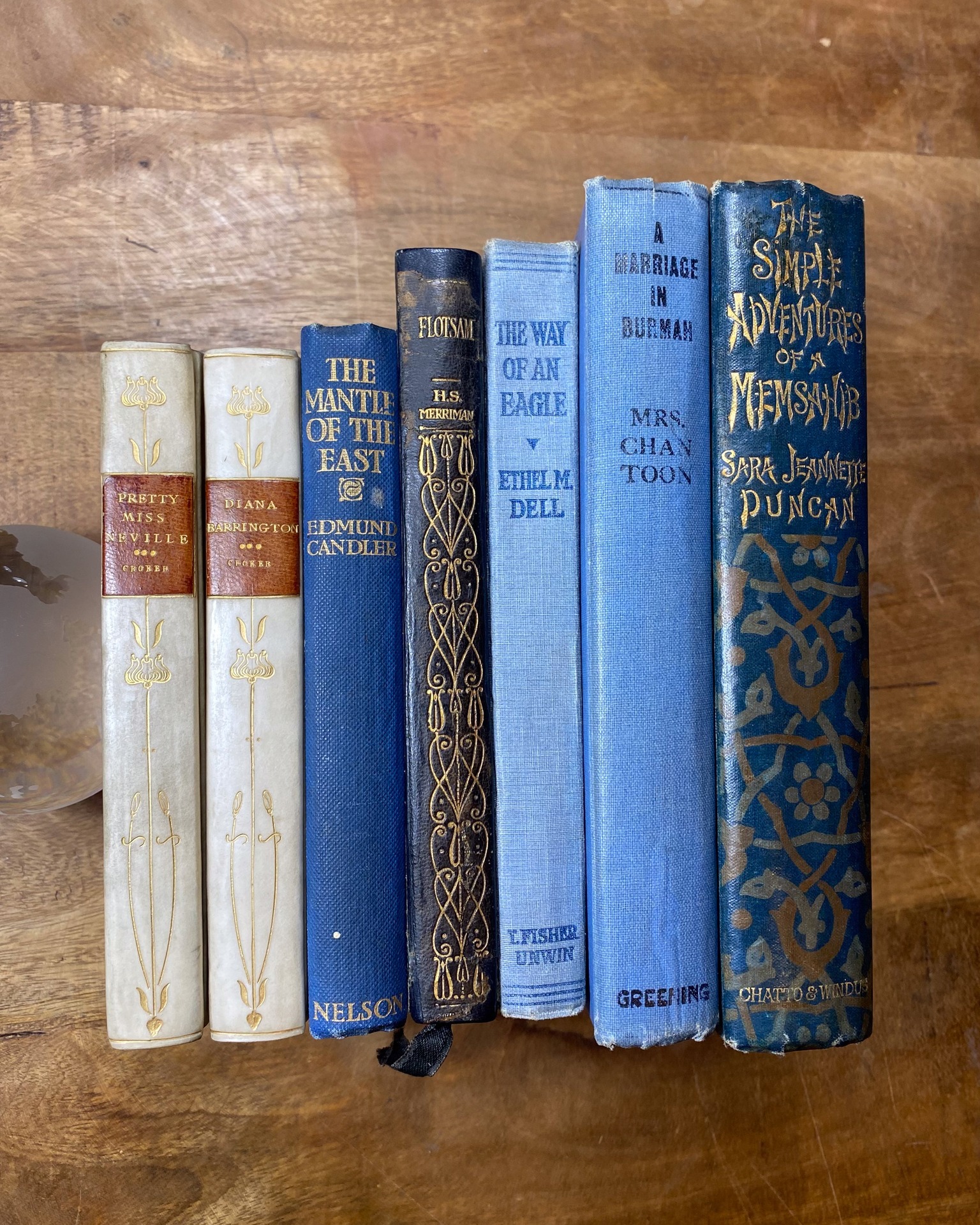 Flotsam, The Study of a Life (1896) Merriman, H. S. [ie Hugh Stowell Scott] Published by Longmans, Green & Co., London, 1896 https://archive.org/details/flotsamstudyofli00scotuoft The mantle of the East by Candler, Edmund, 1874-1926 Publication date 1919 Publisher Edinburgh, Blackwood https://archive.org/details/mantleofeast00canduoft Pretty miss Neville by Bithia Mary Croker Publication date 1884 https://archive.org/.../prettymissnevil0.../page/n4/mode/2up Diana Barrington by Croker, B. M. (Bithia Mary), d. 1920 Publication date 1889 https://archive.org/.../dianabarrington0.../page/n3/mode/2up