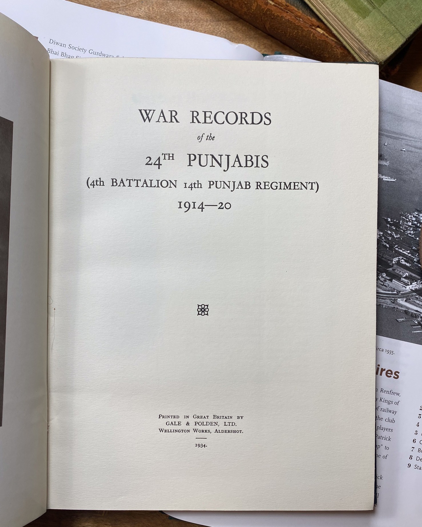 War records of the 24th Punjabis (4th Battalion 14th Punjab Regiment) 1914-1920 PRINTED IN GREAT BRITAIN GALE & POLDEN, LTD. WELLINGTON WORKS.,ALDERSHOT 1934 The 24th Punjabis, an Indian Army Regiment, valiantly fought in the campaign in Mesopotamia during World War I. From the battle of Shaiba to the advance to Ctesiphon and the subsequent retreat to Kut-al-Amara, they displayed unwavering courage and determination. Despite enduring the disastrous siege of Kut-al-Amara and the appalling sufferings in Turkish captivity, the regiment emerged resilient. They were reformed with new personnel and went on to serve in Mesopotamia, Salonika, south Russia, and Anatolia, leaving behind a rare record of one of the Great War's worst disasters. Their indomitable spirit and sacrifices shall never be forgotten.